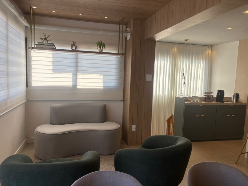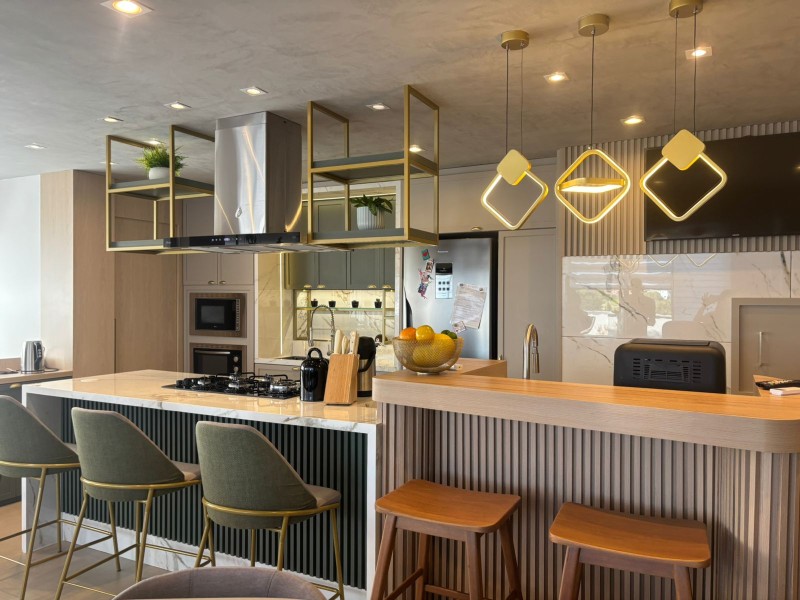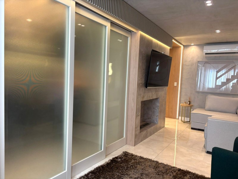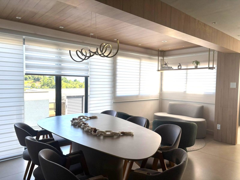 Na parte superior ampla área gourmet com churrasqueira, lavabo , sala de estar, sala de jantar com lareira e uma sacada/terraço, proporcionando uma vista panorâmica. Todos os ambientes climatizados, automatizados (sensores e persianas automatizadas).