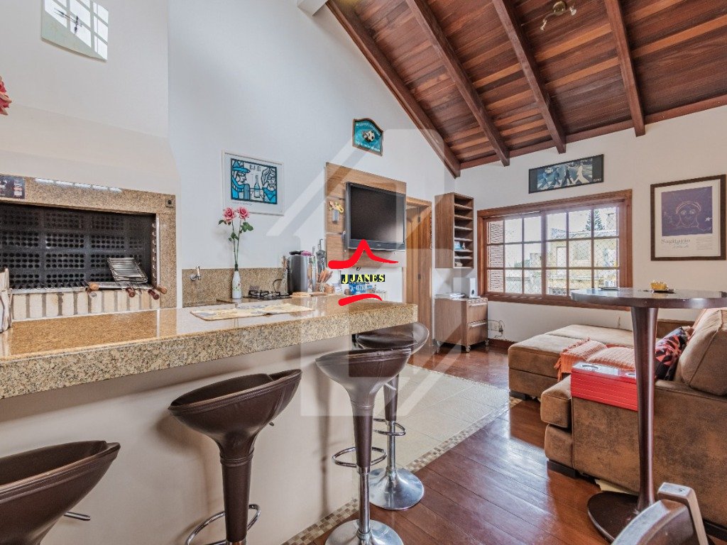 No segundo pavimento fica a área de lazer do imóvel, constituído por um espaço gourmet com churrasqueira, mesa para 6 pessoas, lareira, banheiro social, piscina e um deck para contemplar a vista da cobertura.