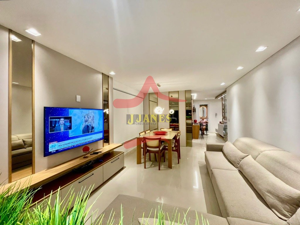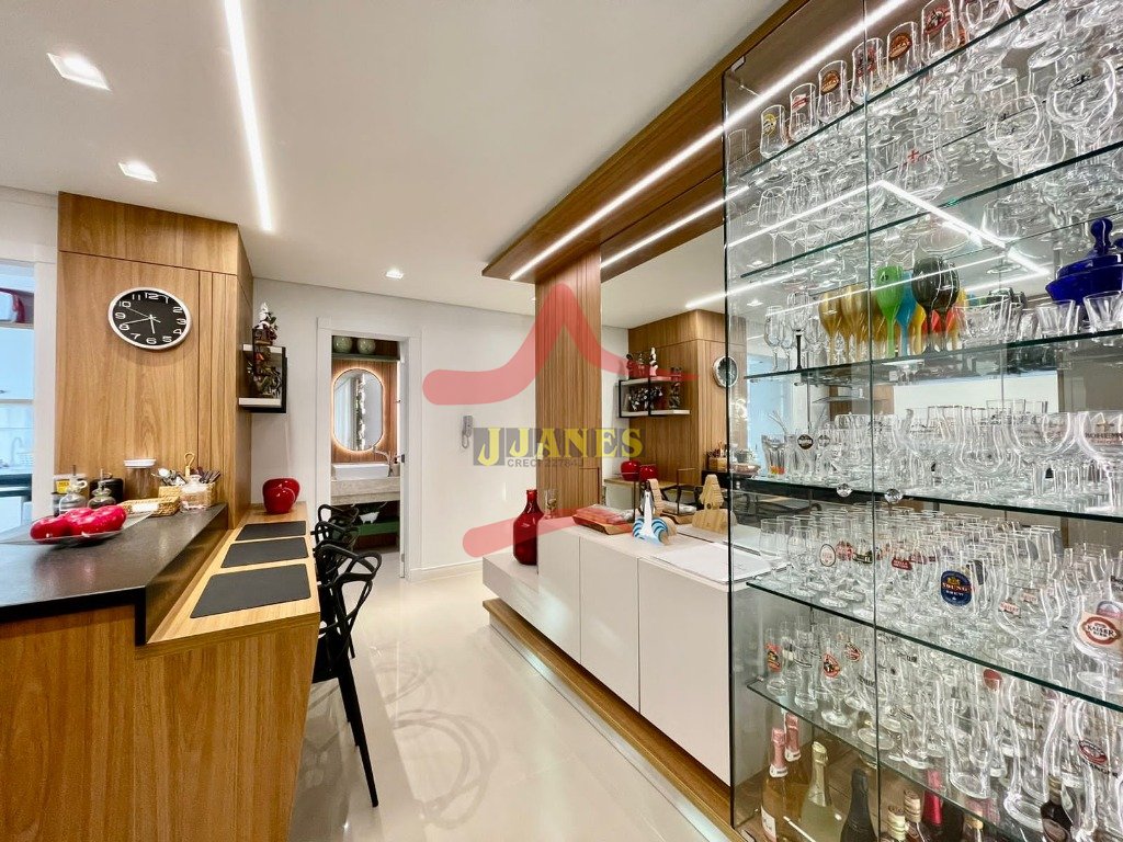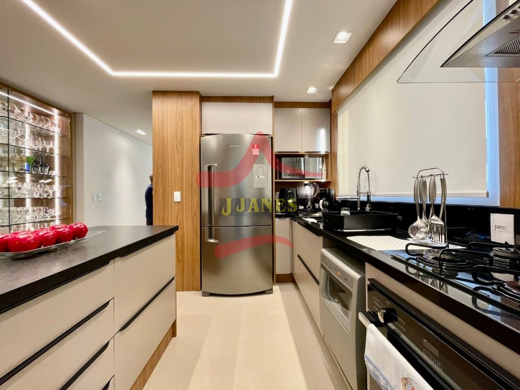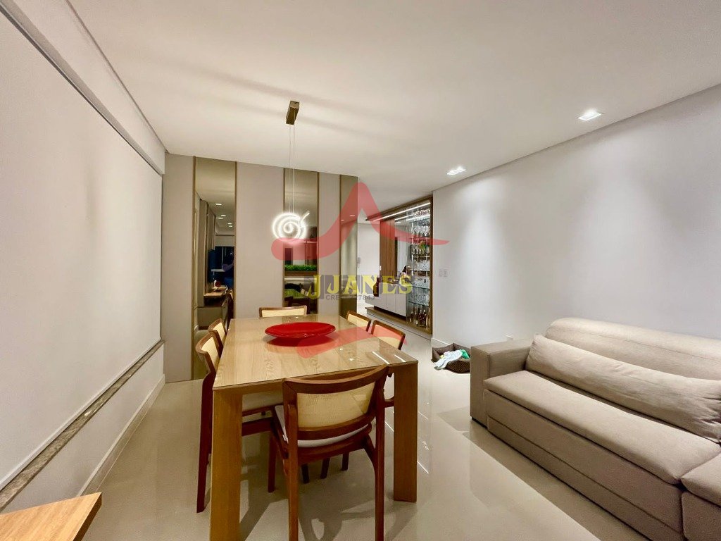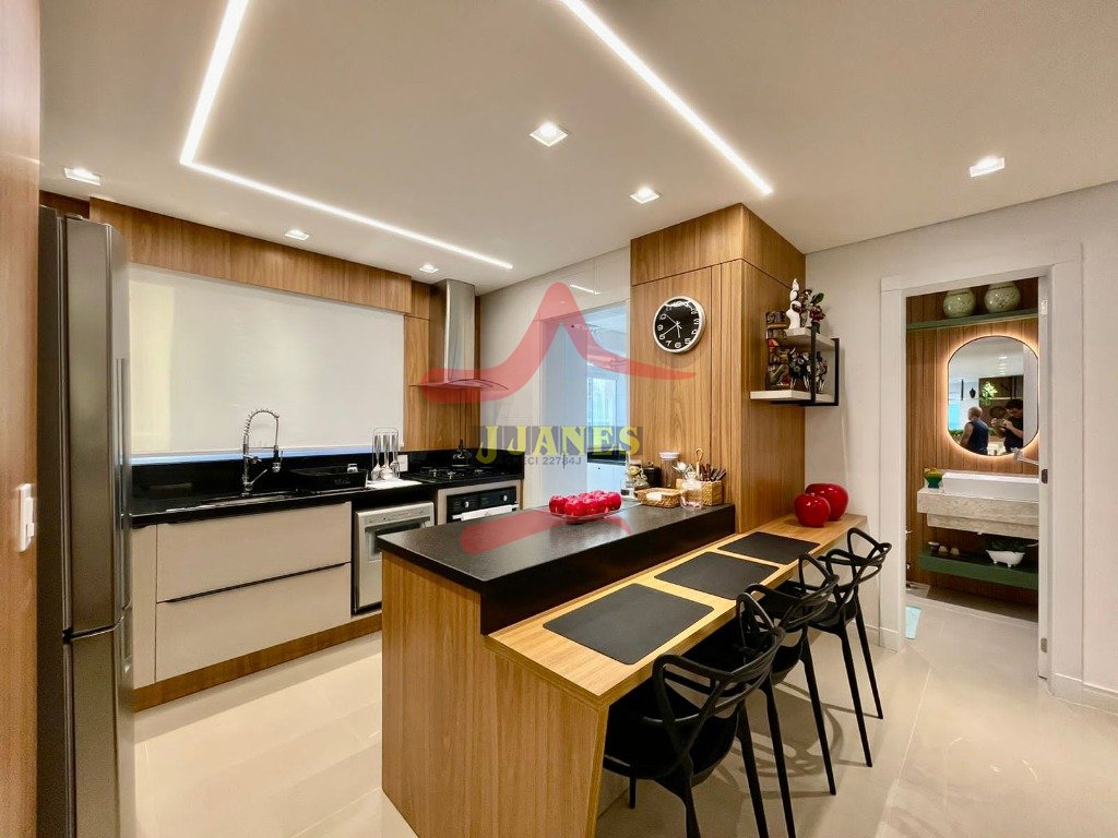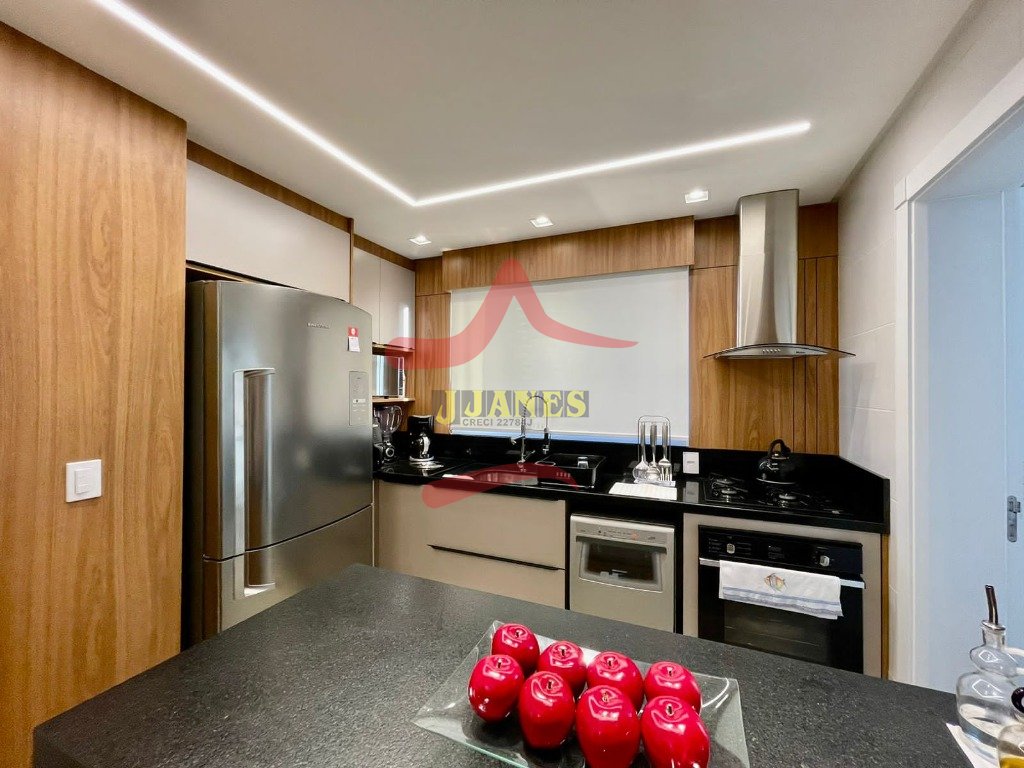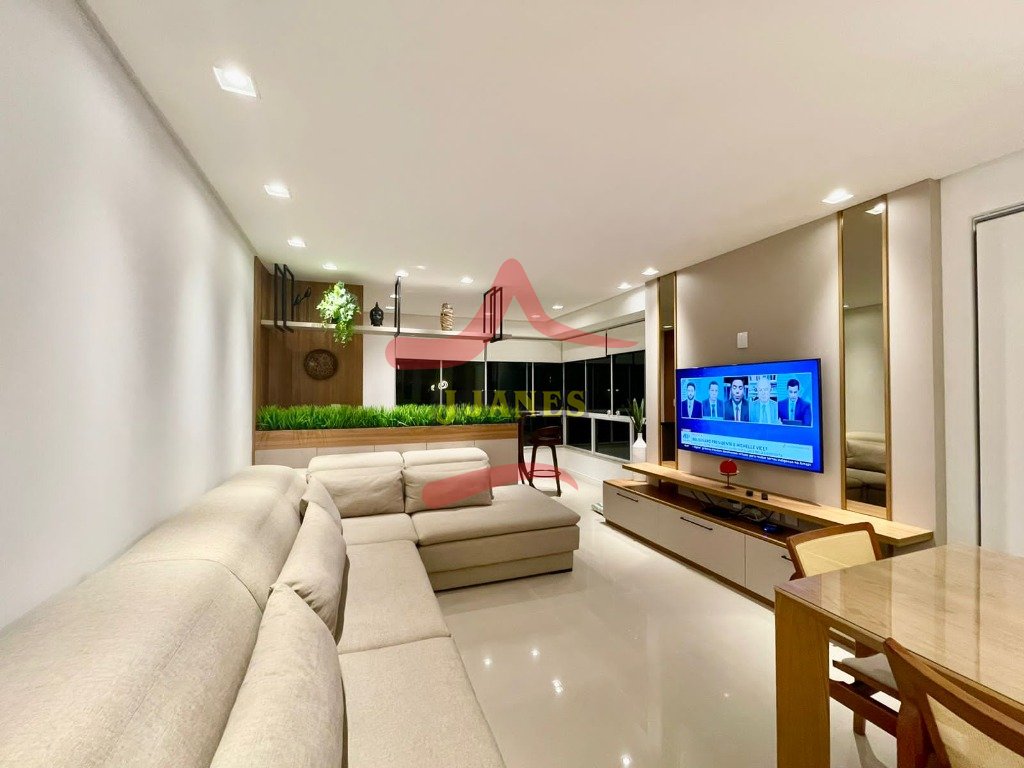 APARTAMENTO-Frente leste, mobiliado com requinte, vista para o mar, com 3 dormitórios, sendo 1 suíte, banheiro social; lavabo, living 3 ambientes com cozinha americana, sacada integrada com churrasqueira; lavanderia; ar condicionados em todos os ambientes.