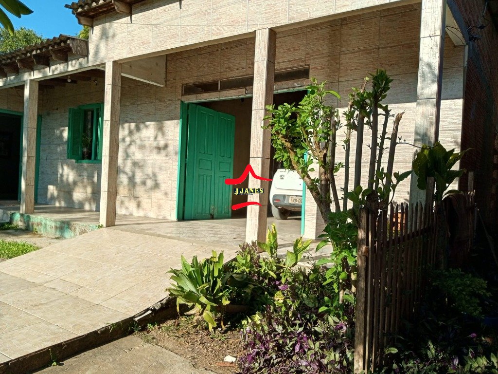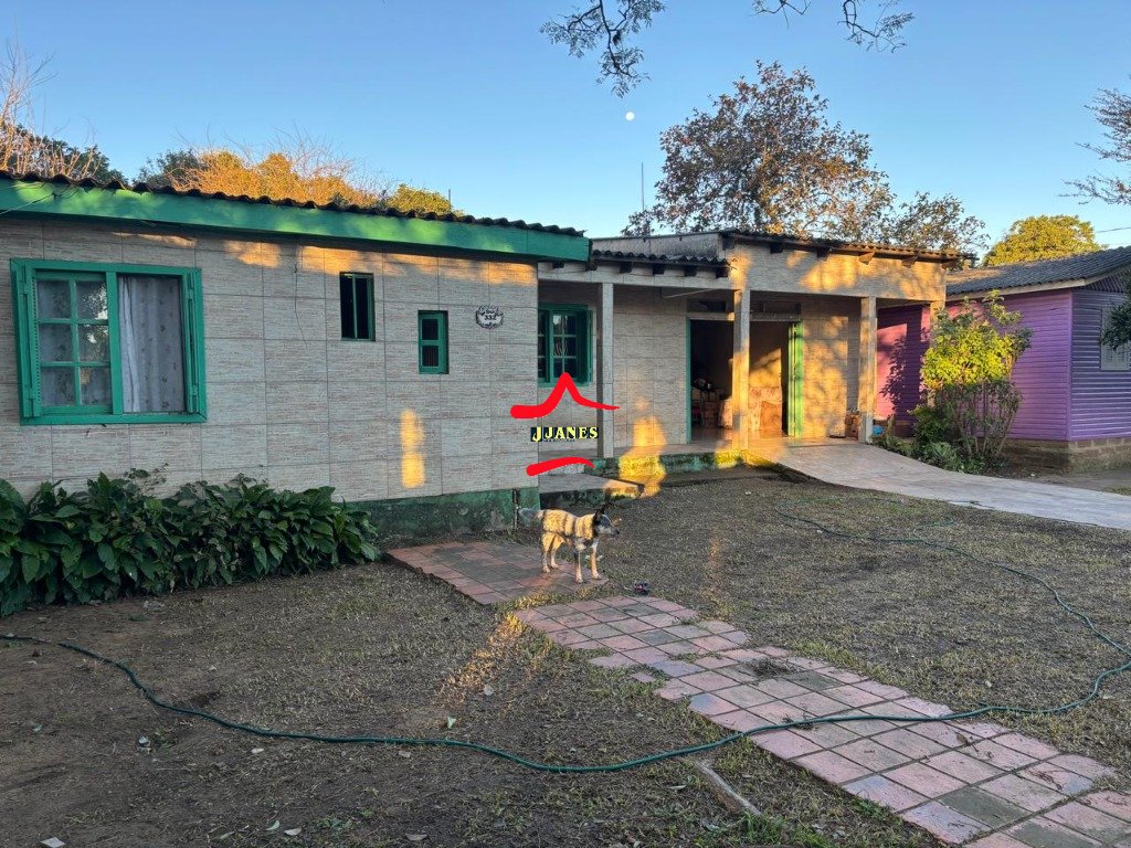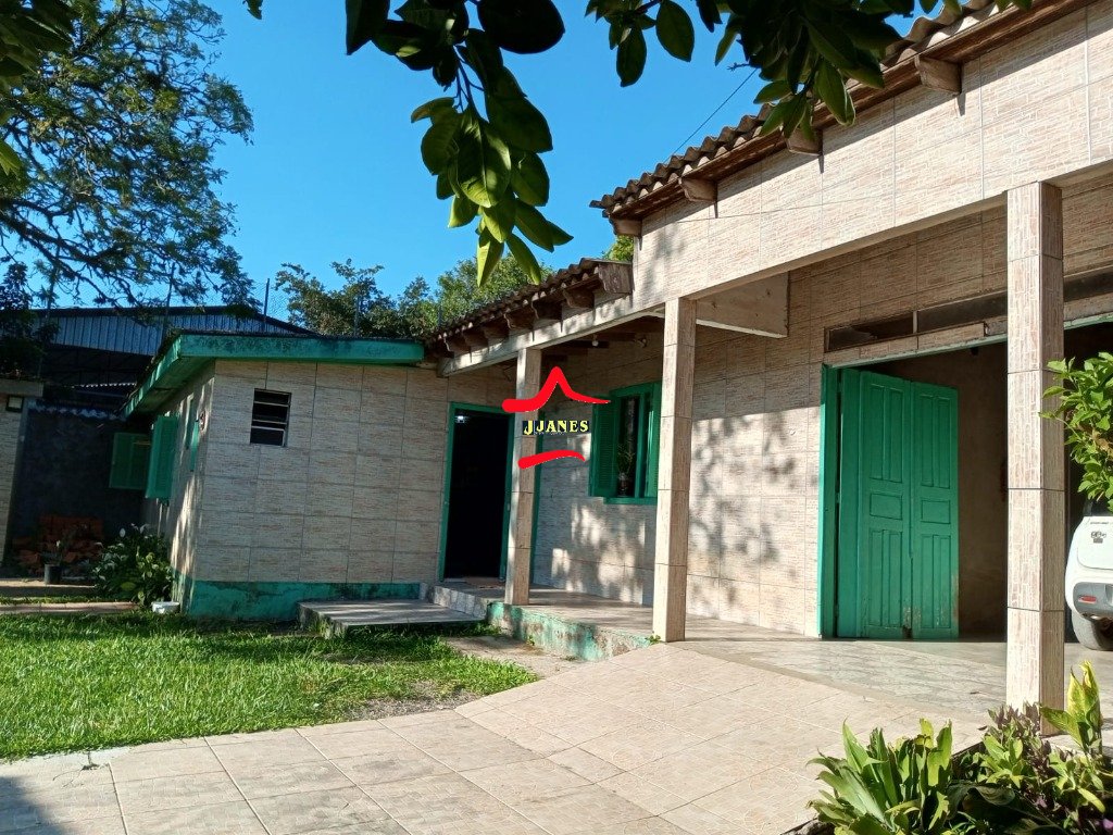 a-Residência com 3 dormitórios, 2 salas, cozinha, lavanderia, banheiro social; garagem com fogão campeiro.