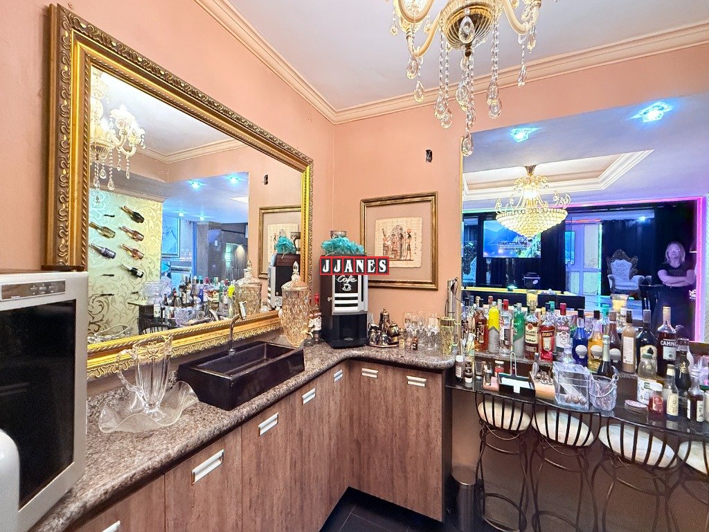 Espaços totalmente decorados com mobília Luiz XV, tapetes persa e francês, mobiliário de alta qualidade, contando também com inúmeros lustres de cristais de alto valor.