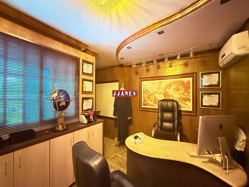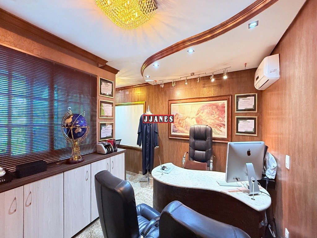 A residência conta ainda com espaço próprio e confortável de home office com cadeiras presidenciais em couro legítimo e mesa em tampo de mármore, mais mobiliário.