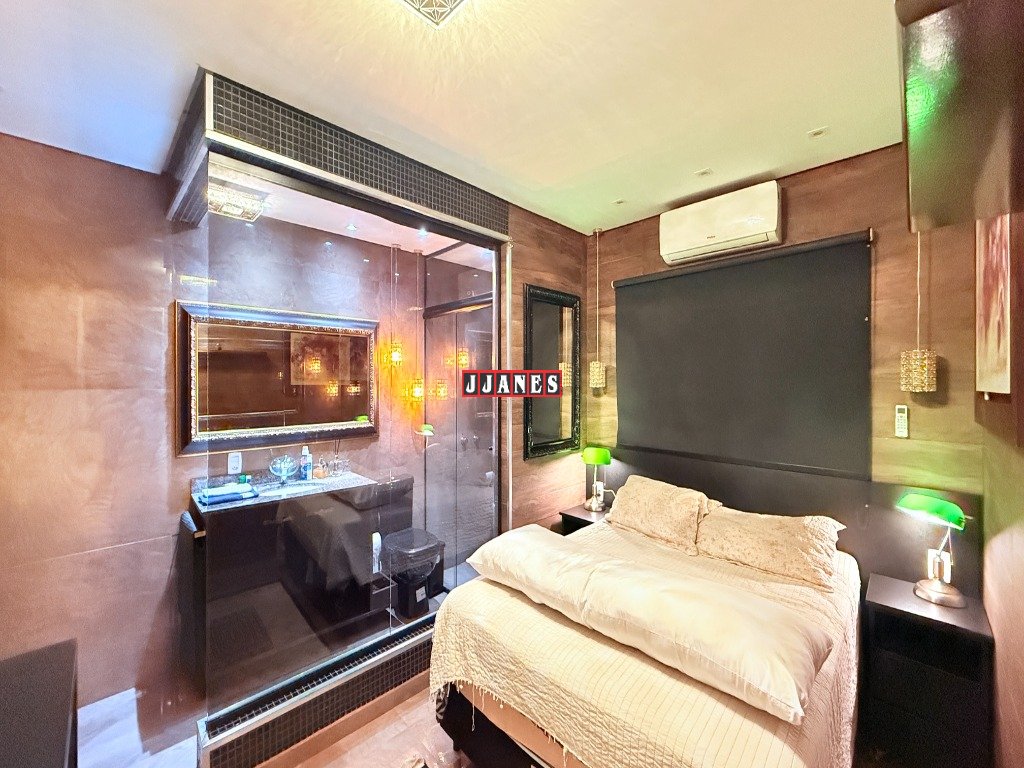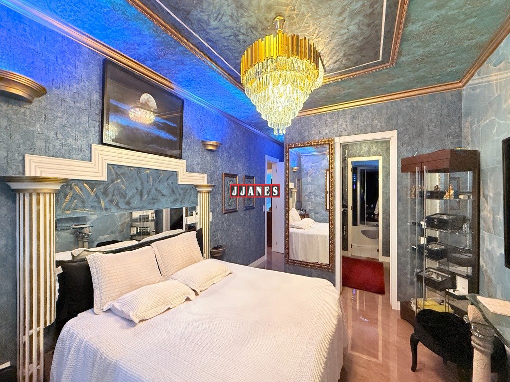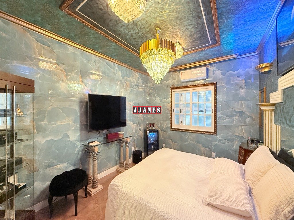 Suíte master em decoração palaciana, com cama presidencial articulada com controle , além closet e sauna no próprio banheiro, miniadega e frigobar.