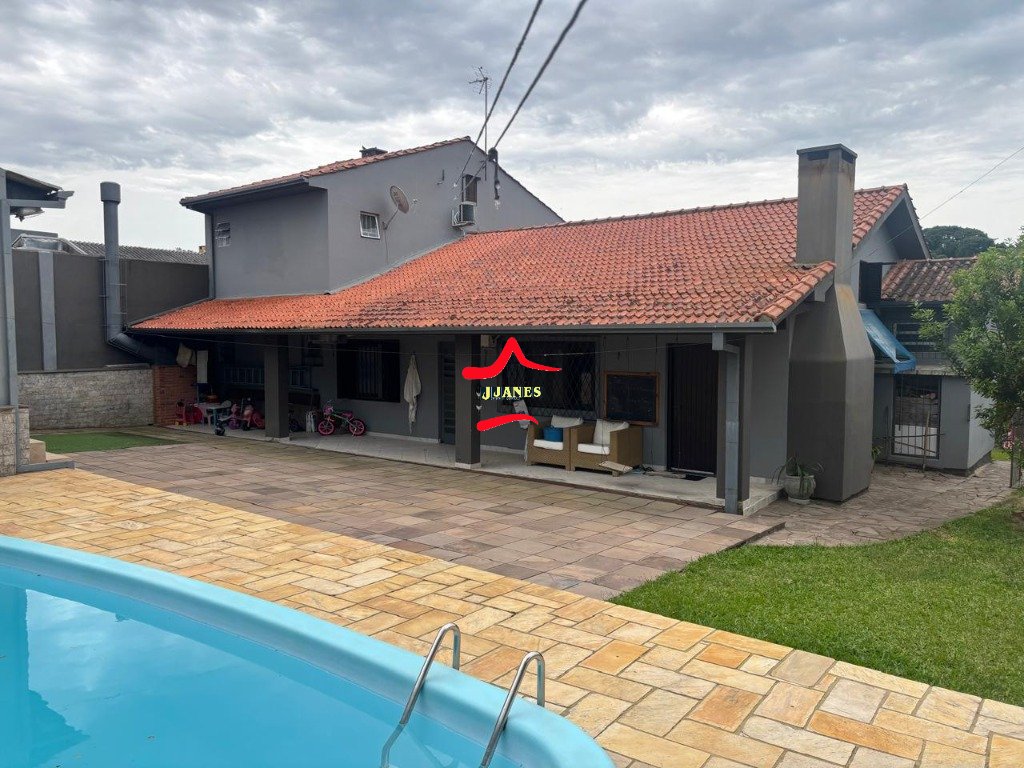 Excelente residência próxima do centro de Viamão, composta de 4 suítes, sendo uma com closet, sacada e lareira, split em 3 suítes, sala de estar com lareira, sala de jantar, cozinha com fogão à lenha, quiosque com cozinha, banheiro e depósito, piscina , garagem para 4 carros com churrasqueira e lavabo.