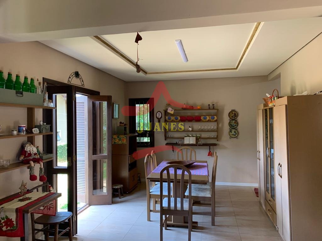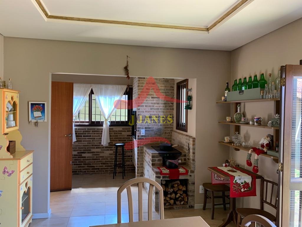 Residência com 2 suítes (uma com split e outra suíte americana); sala com lareira; space; varanda com porcelanato, churrasqueira e fogão a lenha; cozinha e área de serviço. Toda da construção com laje, aquecimento à gás, telhas cerâmica esmaltada.