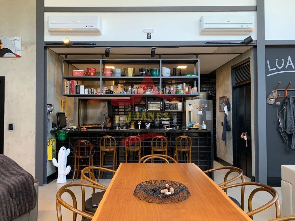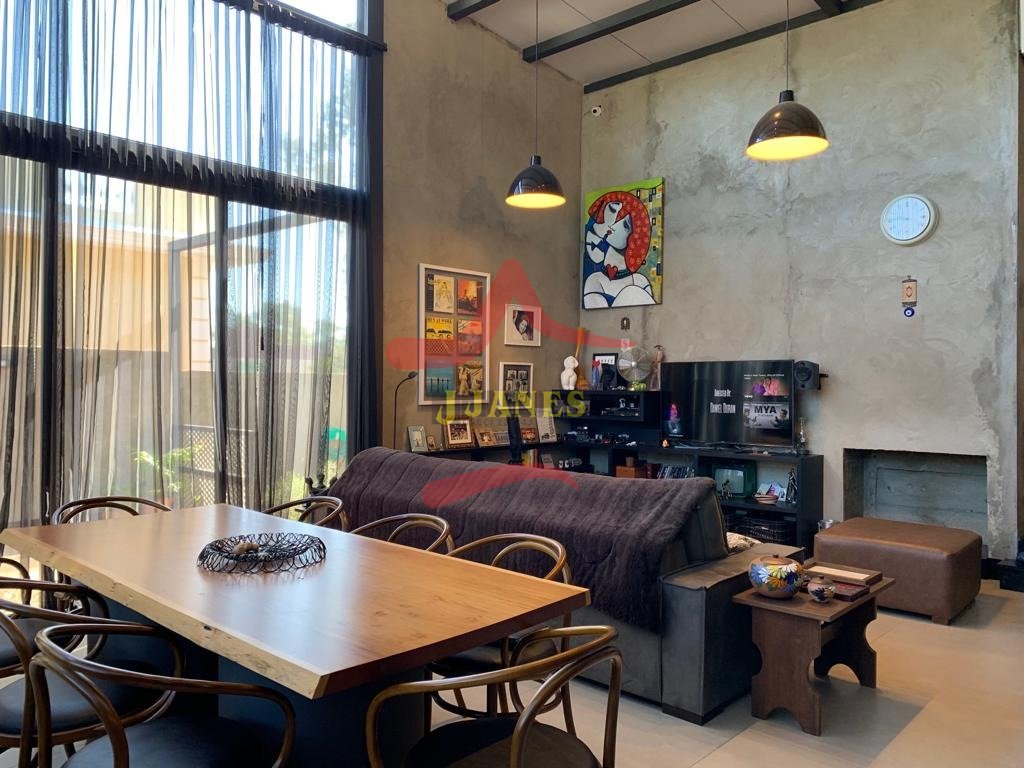 Amplo living, com pé direito duplo, estar, jantar, estar com home Theater, lareira ecologica, 2 splits, cozinha com bancada americana, churrasqueira industrial.