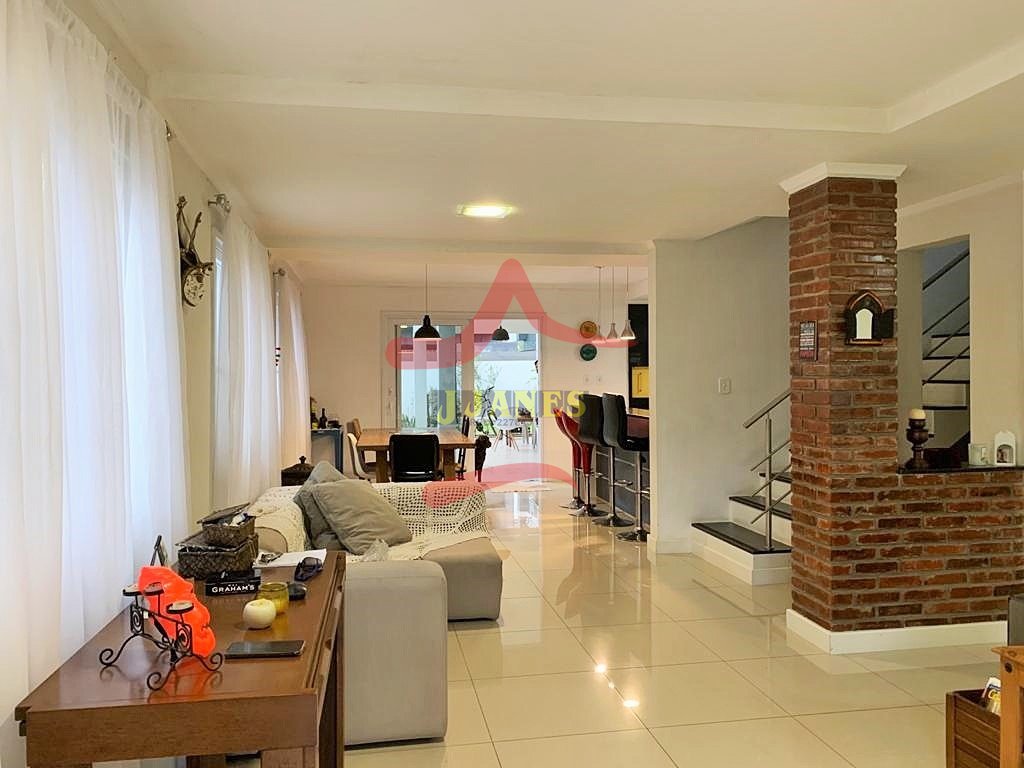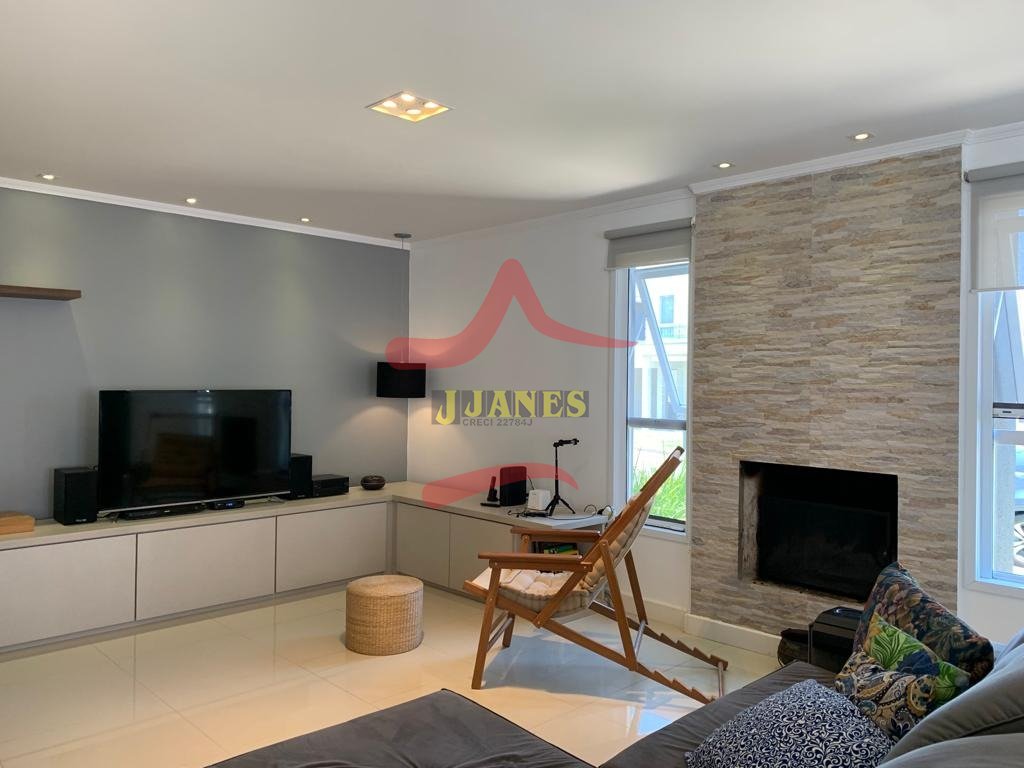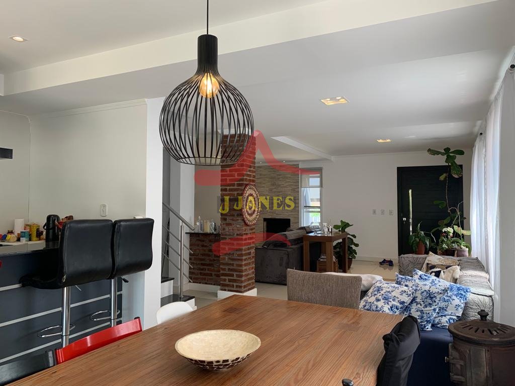 Térreo: Sala de estar com lareira, integrada ao jantar e cozinha ; lavabo; garagem com gourmet ,para 2 carros.