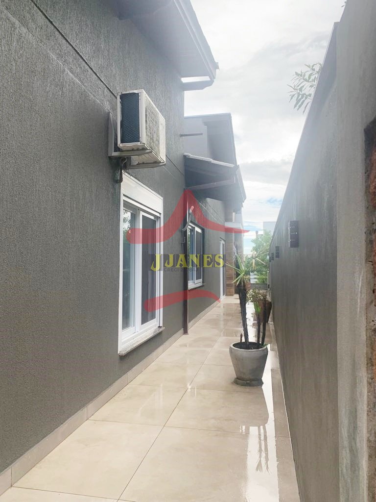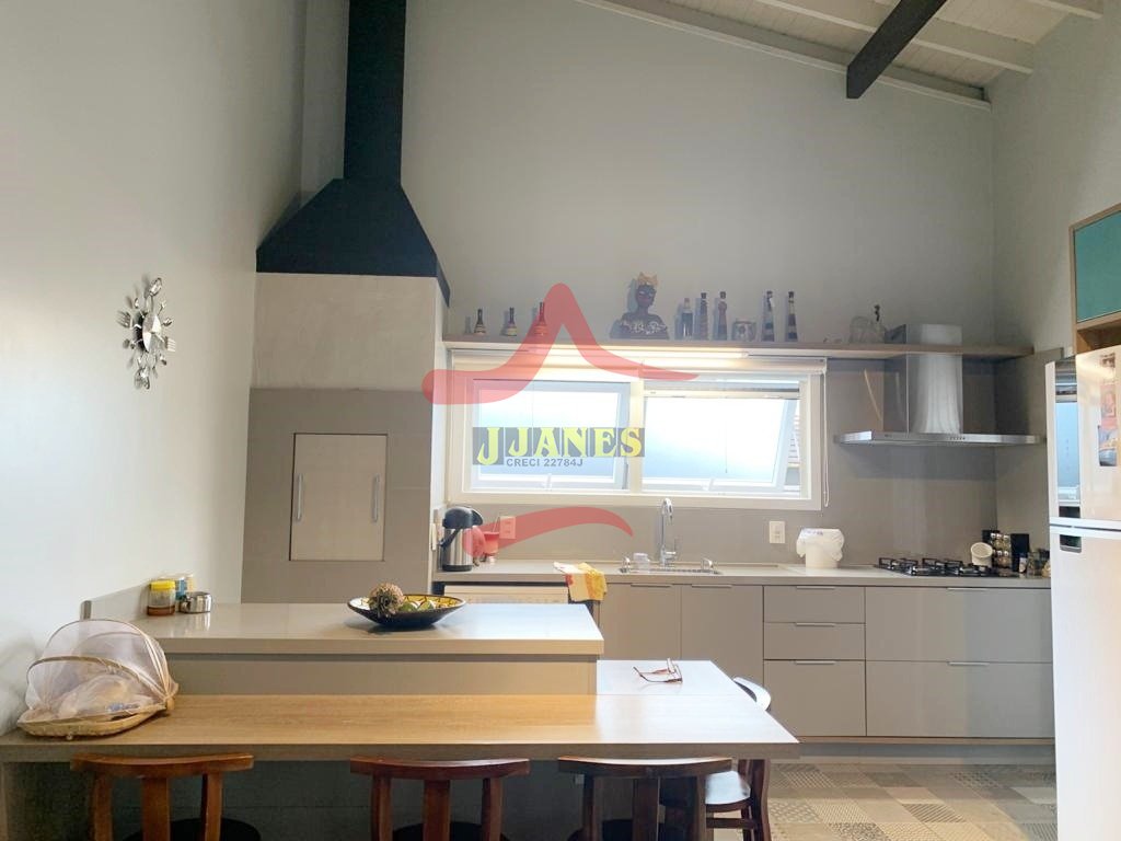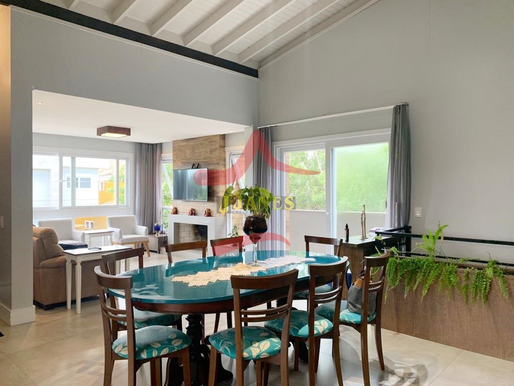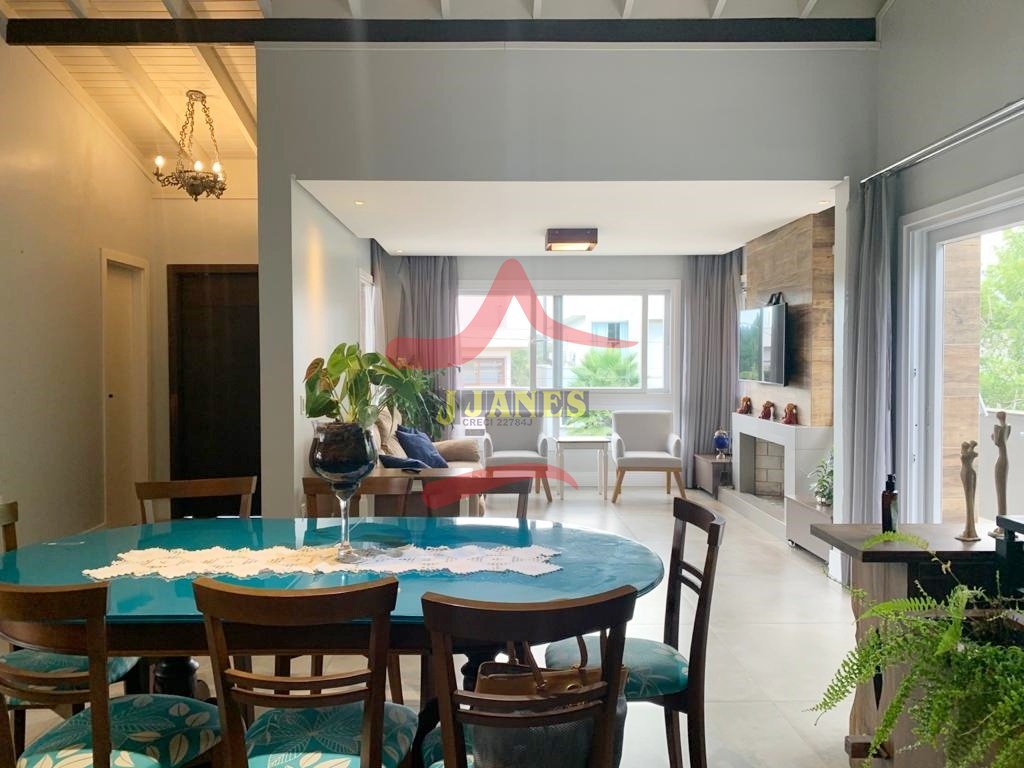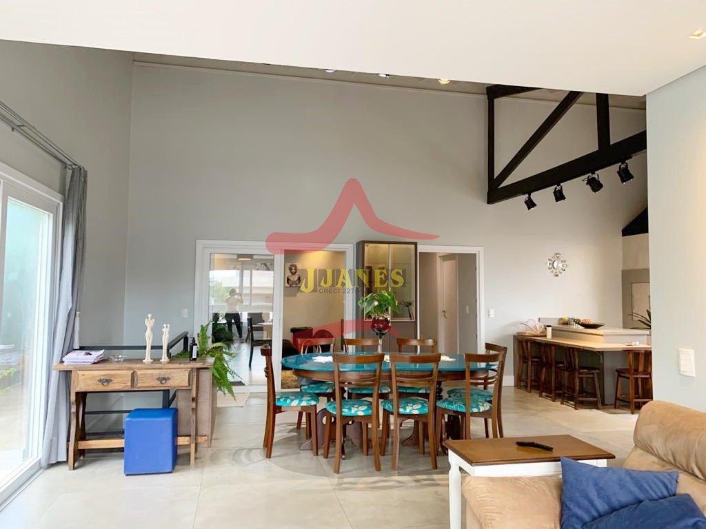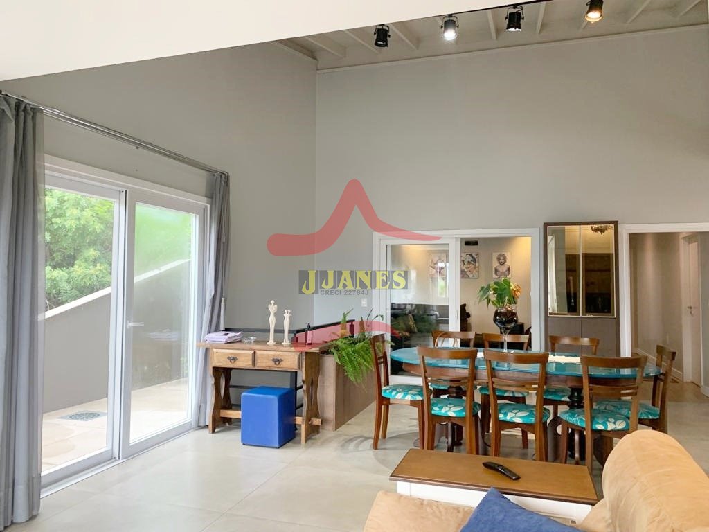 Amplos ambientes integrados, pé direito duplo, estar com lareira, jantar cozinha americana com churrasqueira, sala TV, lavabo, lavanderia.