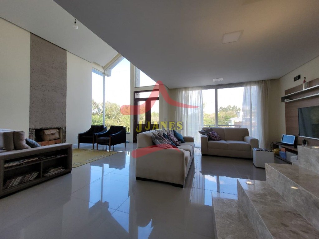 1º. PAVIMENTO: Com acesso plano para o patio, amplos ambientes integrados, sala de estar, lareira, sala de jantar, cozinha com ilha, gourmet, lavabo, 2 dormitórios, banheiro social, lavanderia. Varanda na frente.