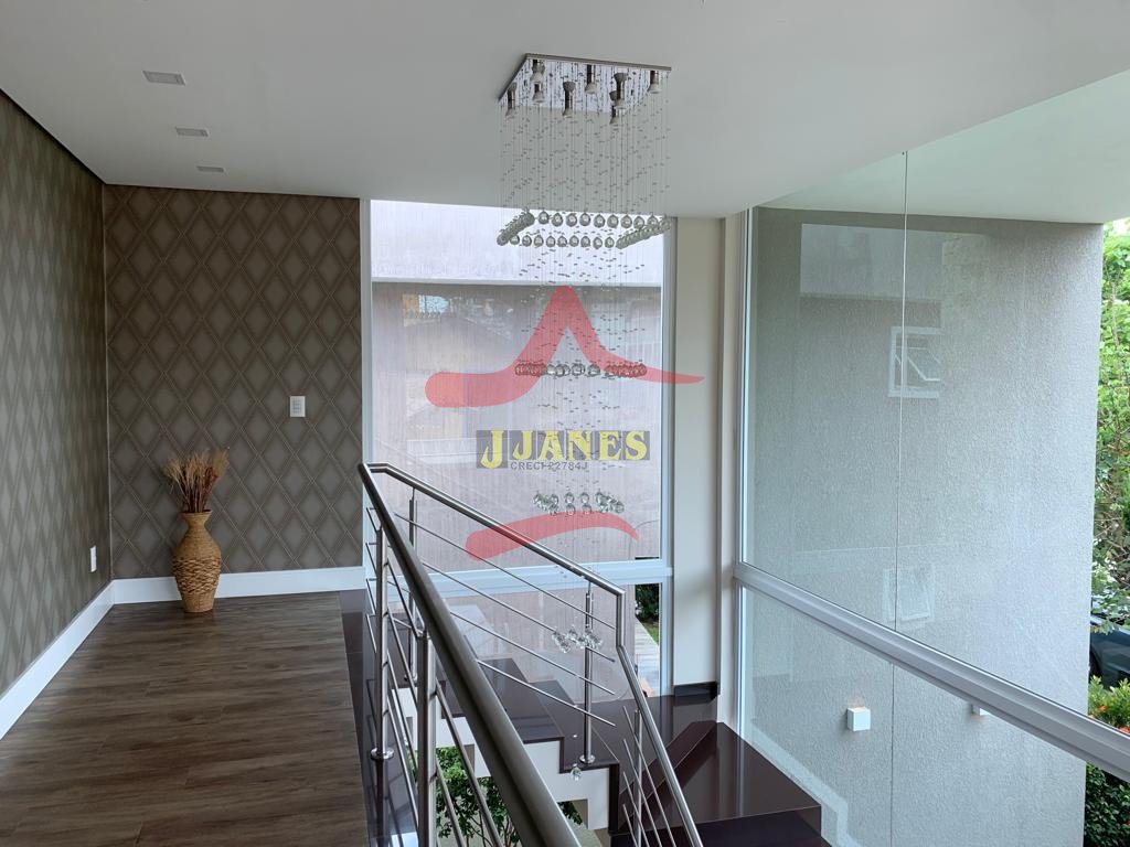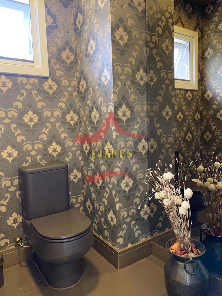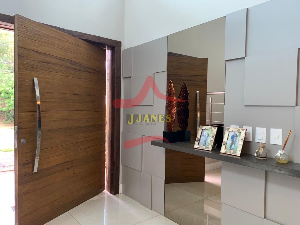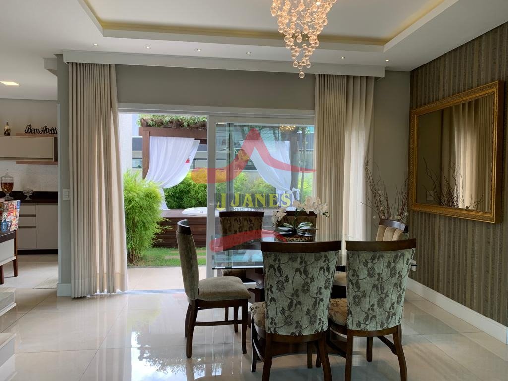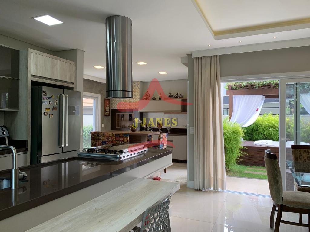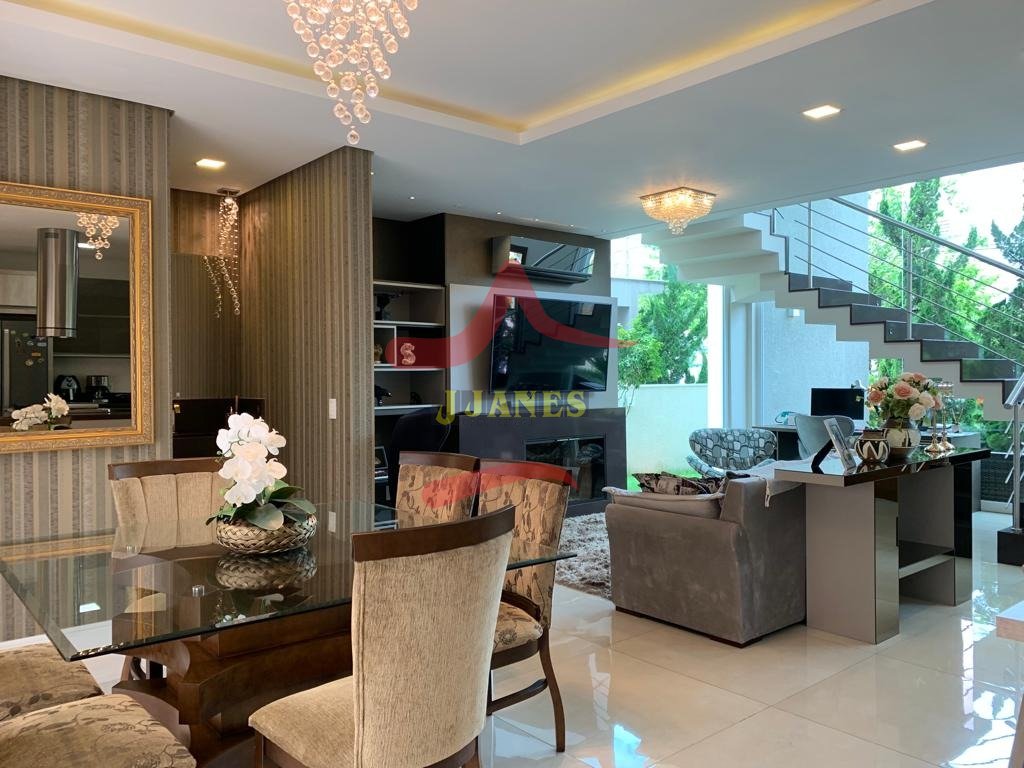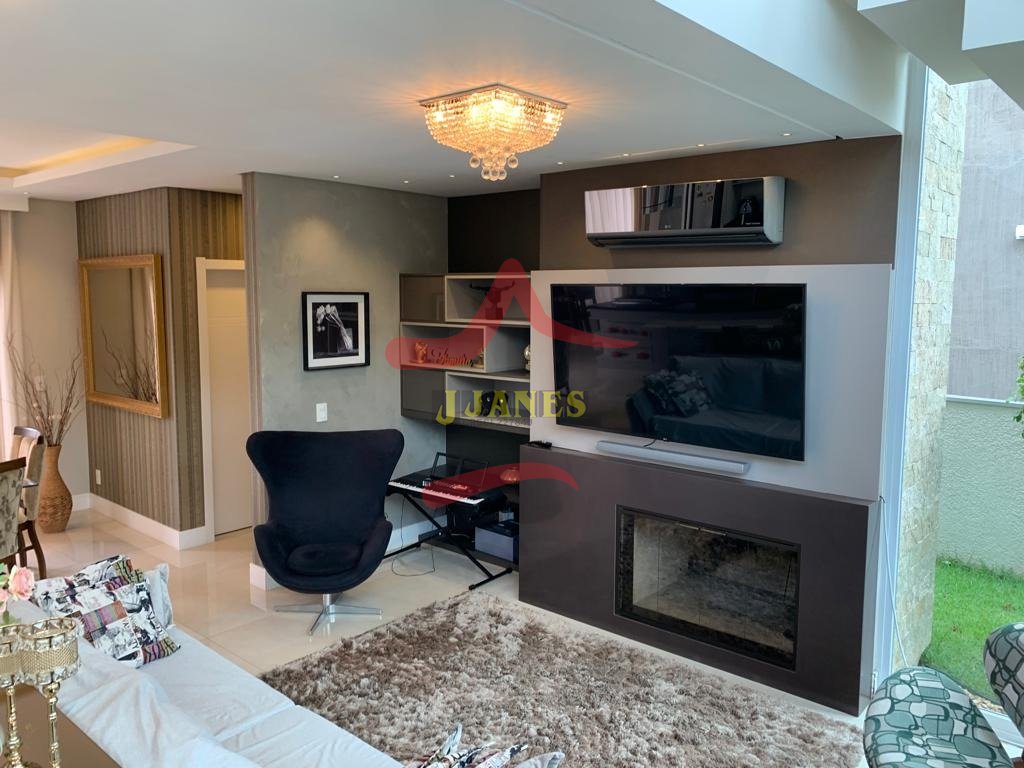 Estar com pé direito duplo e lareira, jantar, cozinha americana, gourmet, lavabo, lavanderia, Home Office.