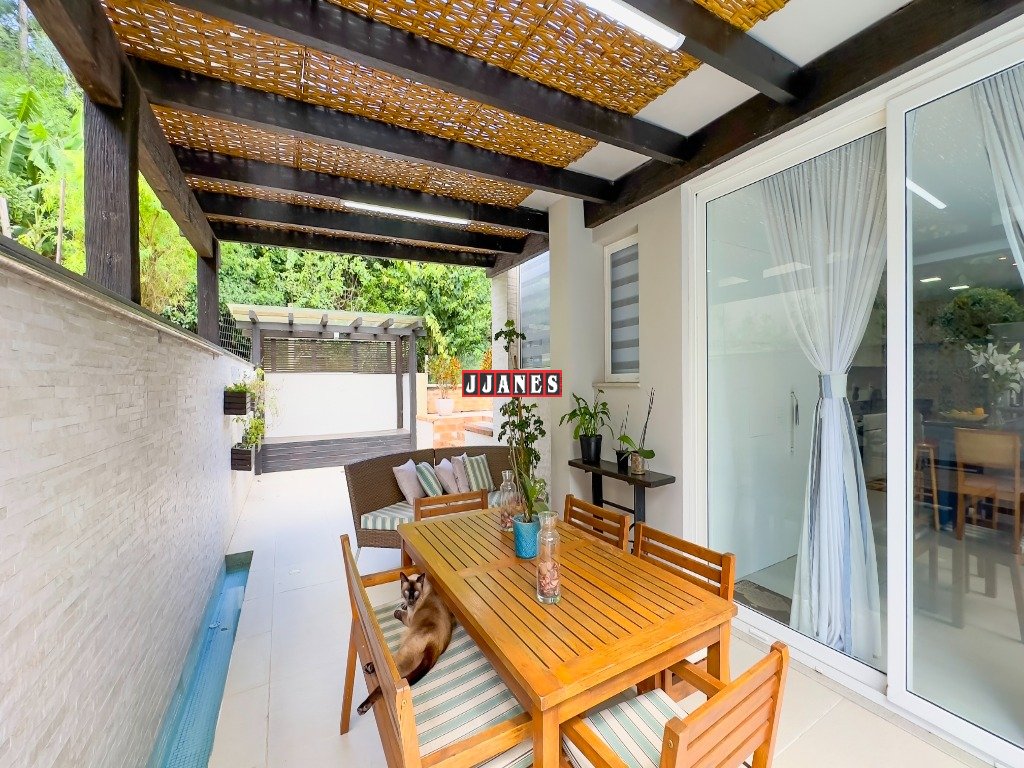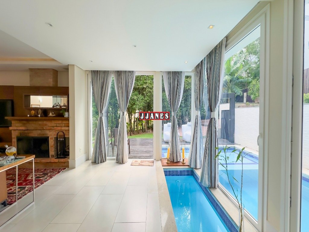 Com 3 suítes, amplos espaços integrados, estar com lareira, jantar, cozinha gourmet, lavabo, piso aquecido, mobiliada, piscina, pergolado, espaço Garden.