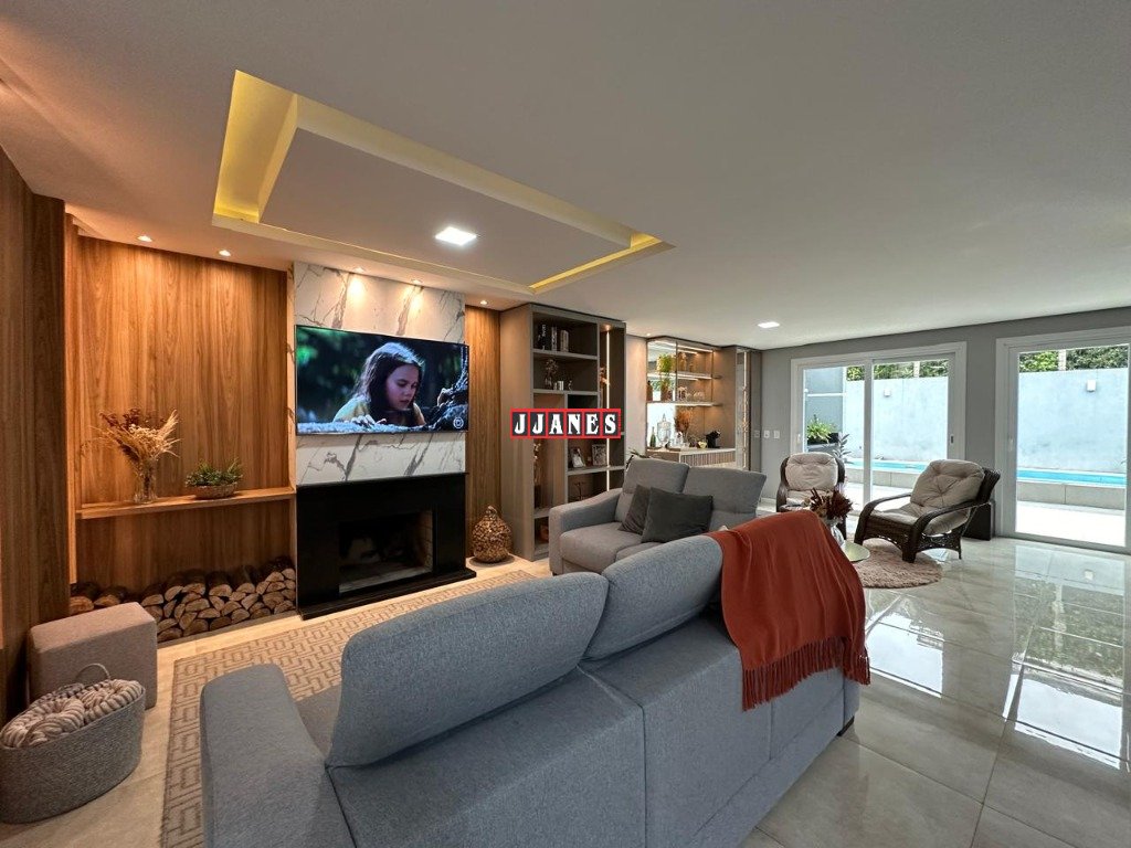 TÉRREO- Sala de estar com lareira, jantar, cozinha, lavabo;