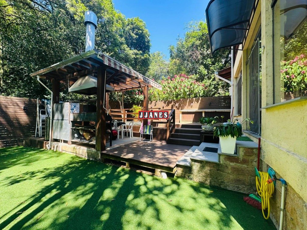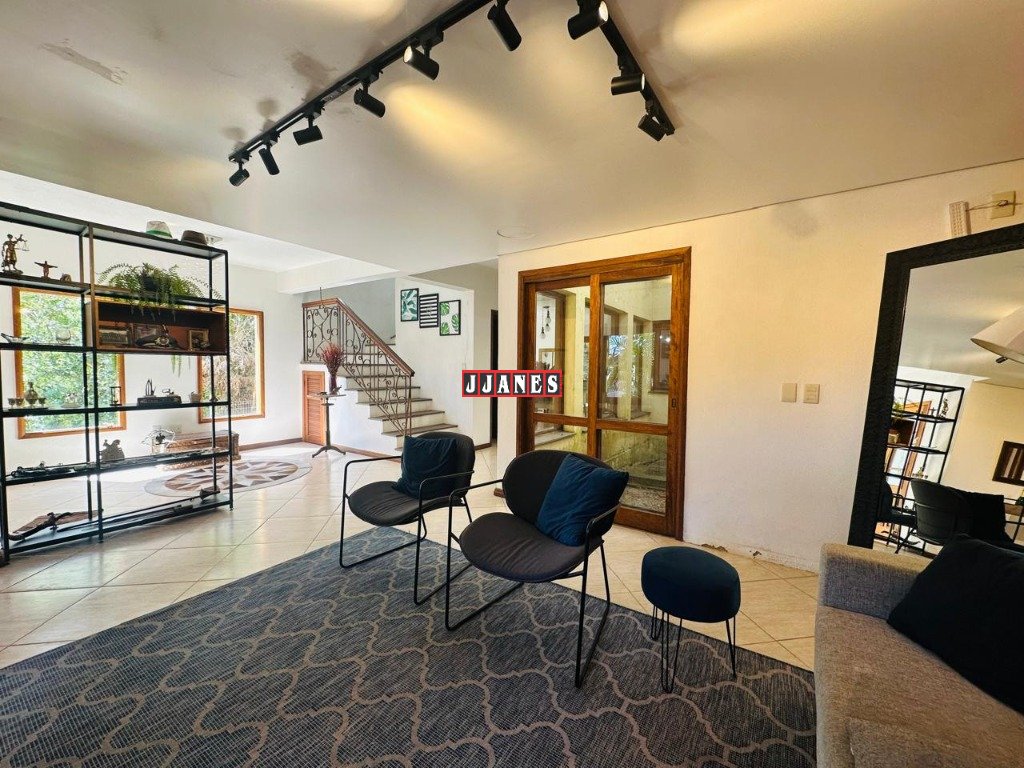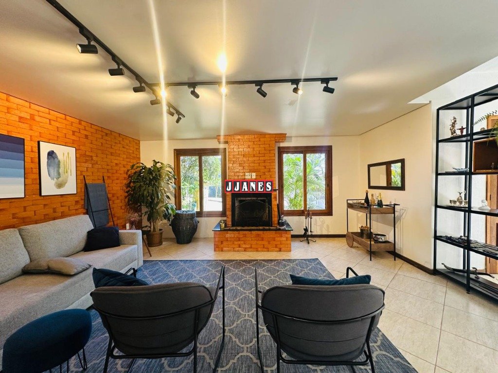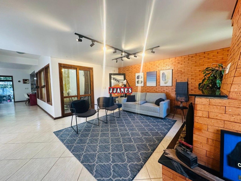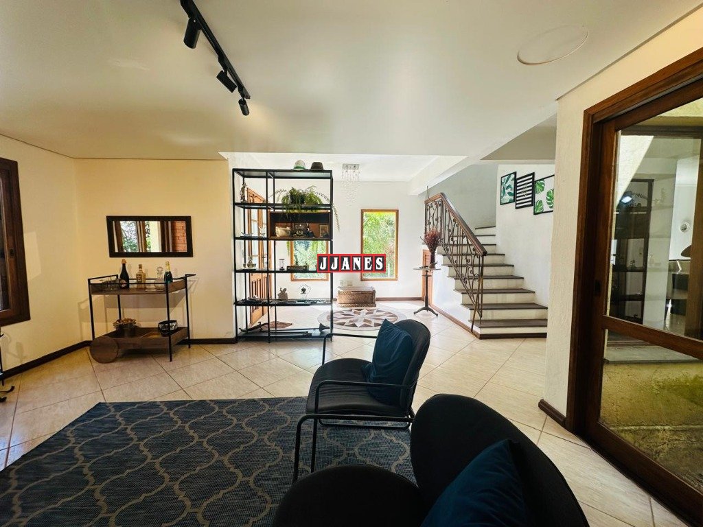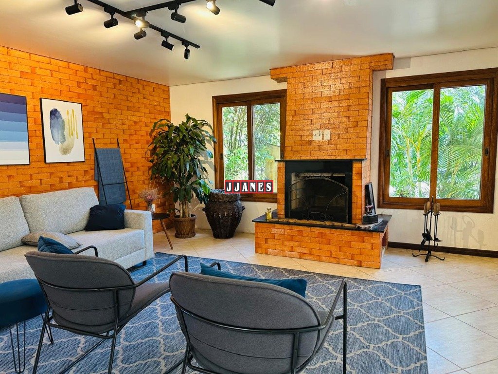 Térreo- living 3 ambientes, sala de estar com lareira, jantar e cozinha, jardim de inverno, espaço gourmet com fogão a lenha, deck com pergolado, lavanderia.