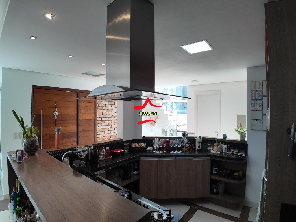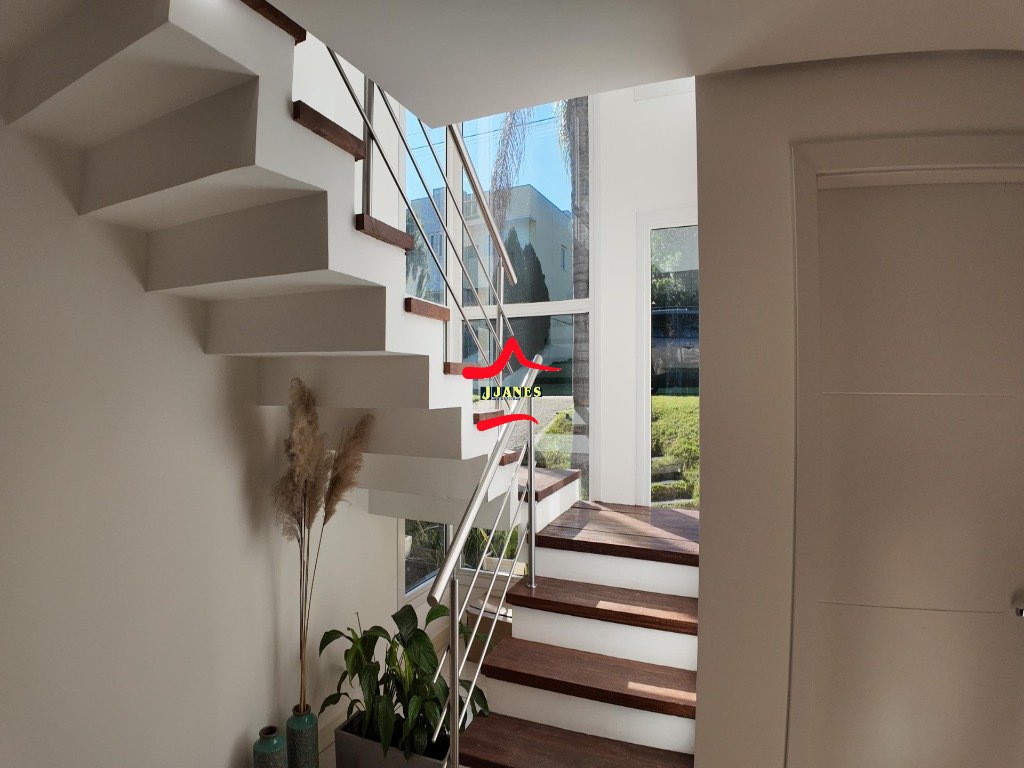TÉRREO: Sala de estar, jantar e cozinha integrada; churrasqueira, home office; lavabo; depósito, varanda; com móveis sob media; Cooktop, forno, coifa e microondas.