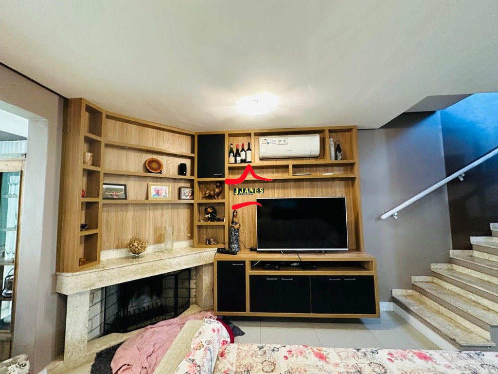 -TÉRREO: Escritório, sala de estar com lareira, sala de jantar, cozinha americana, 01 banheiro.