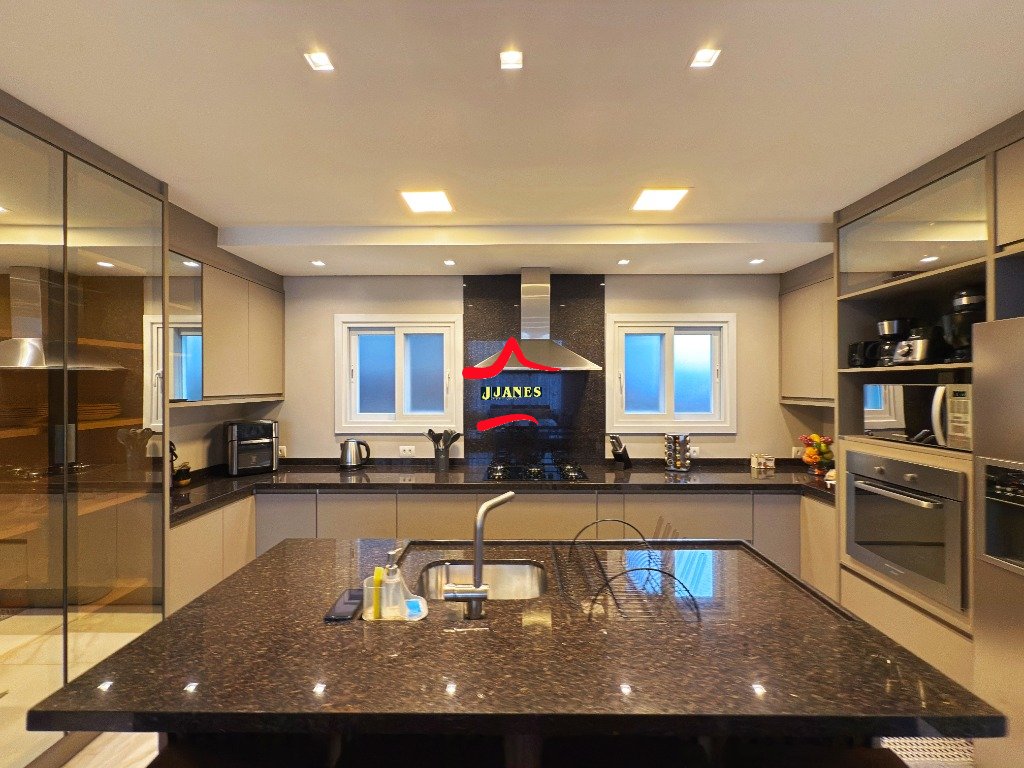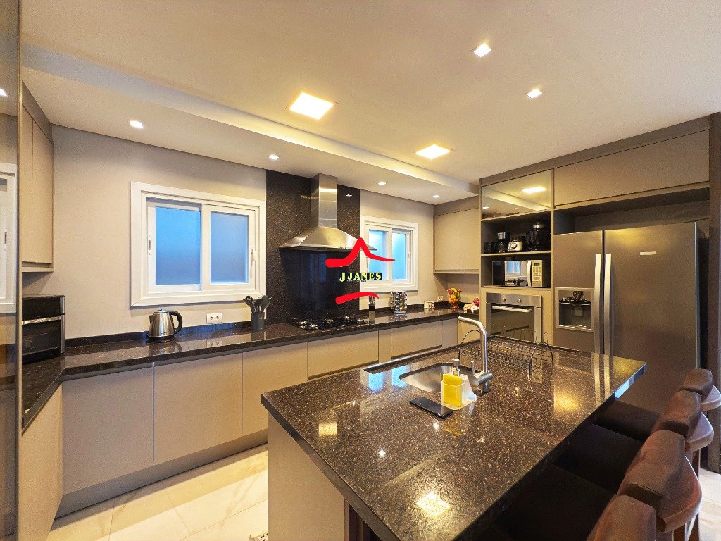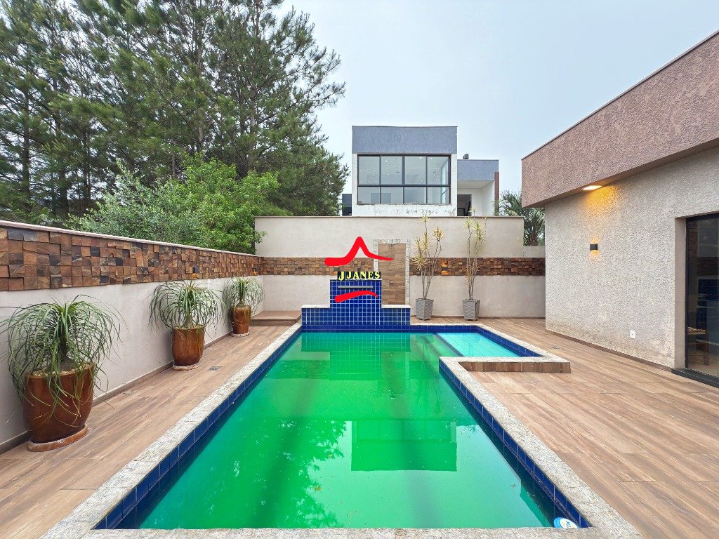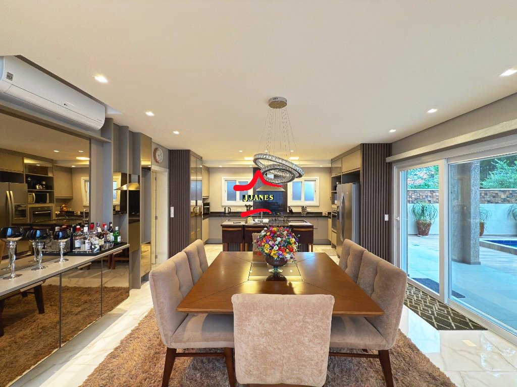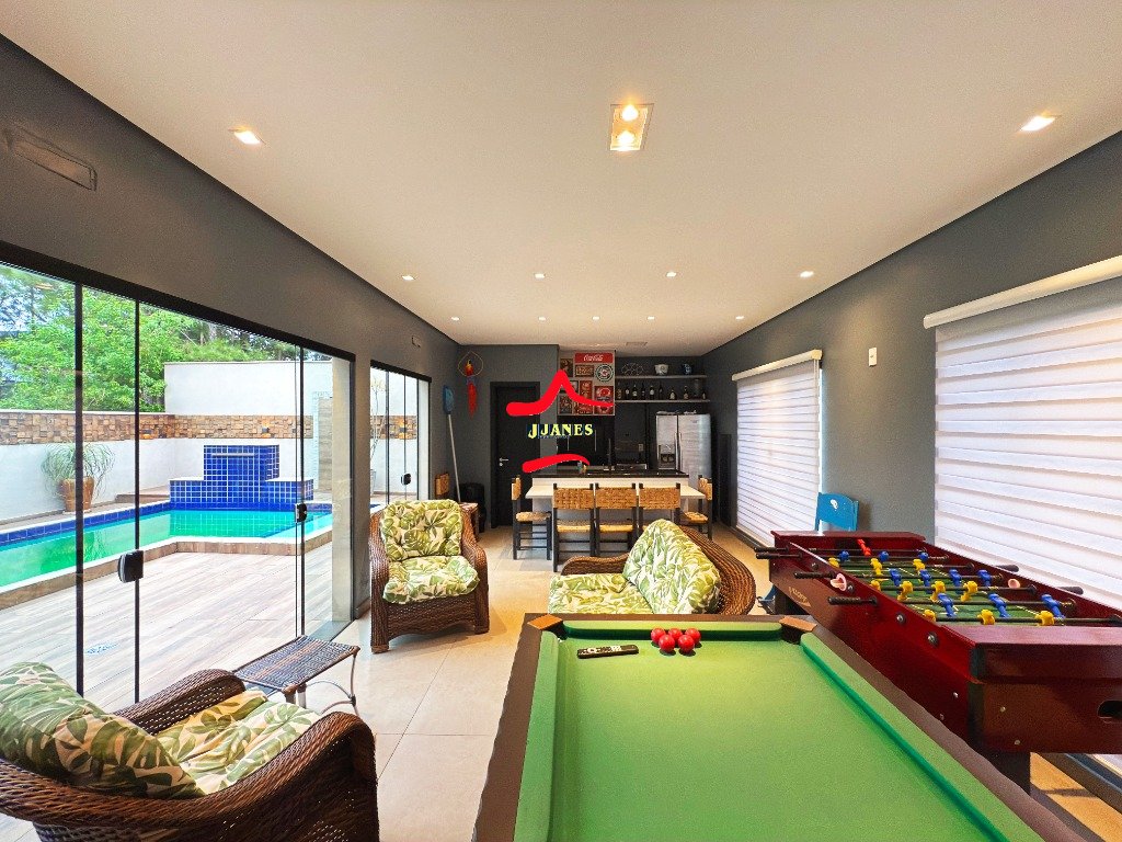 - Amplo Living (Hall, sala de estar com lareira e pé direito duplo, sala de jantar, cozinha com ilha), vista para piscina; 1 DORMITÓRIO banheiro social; lavanderia;