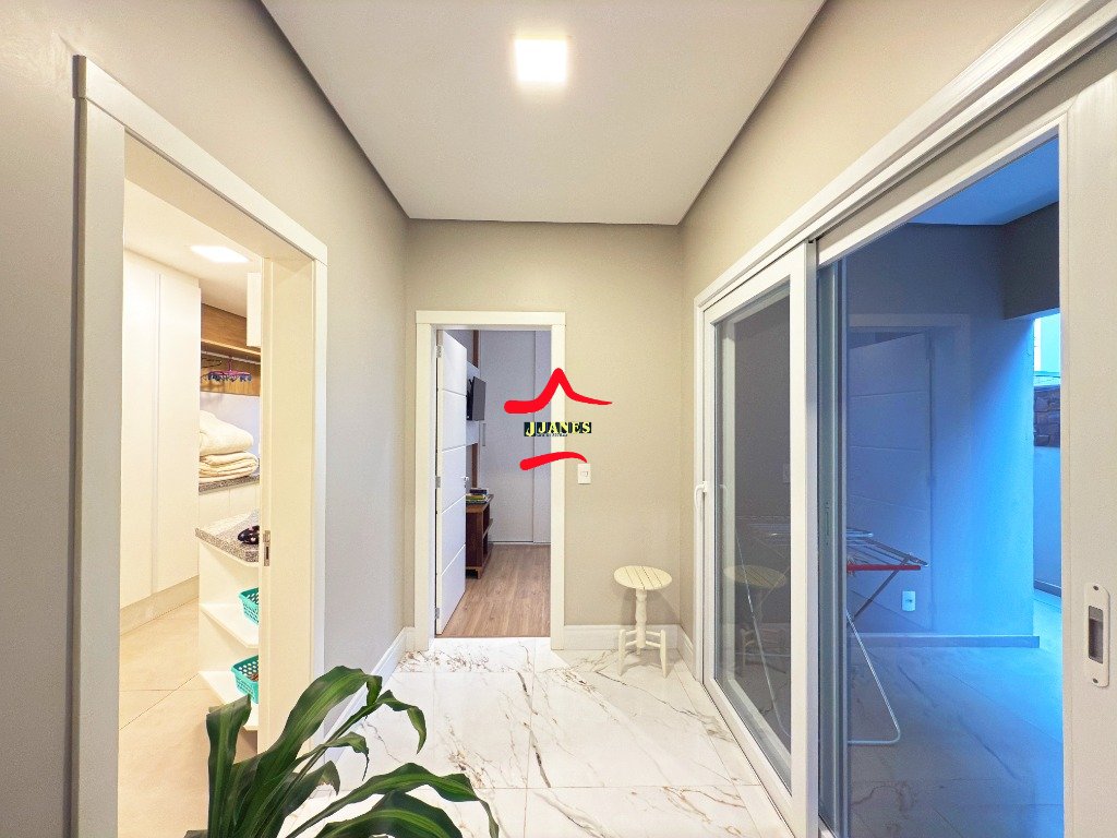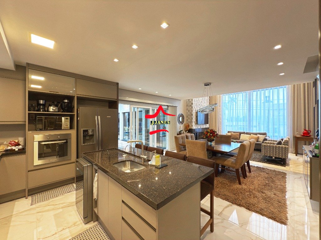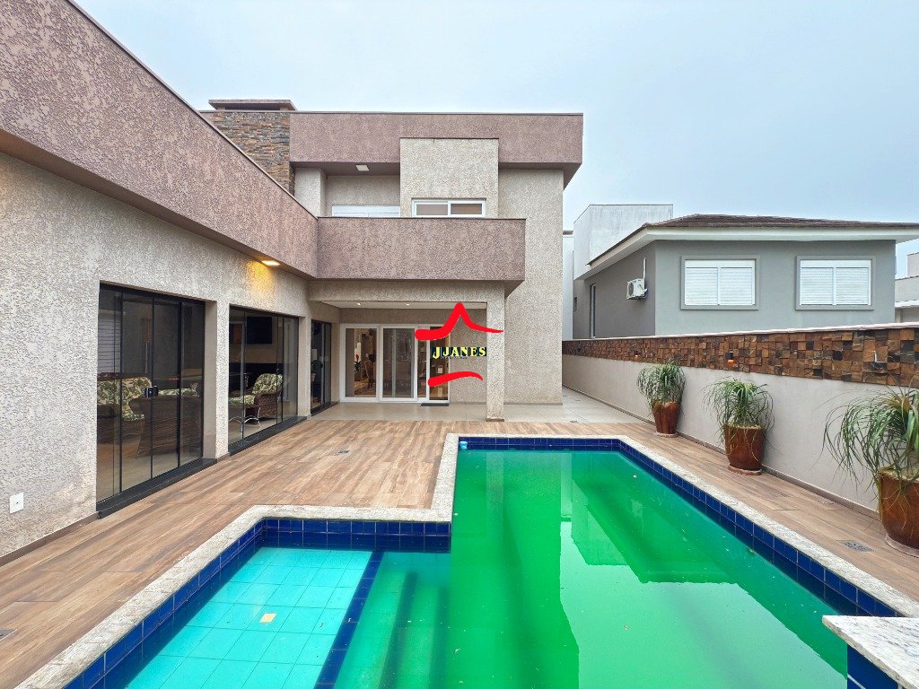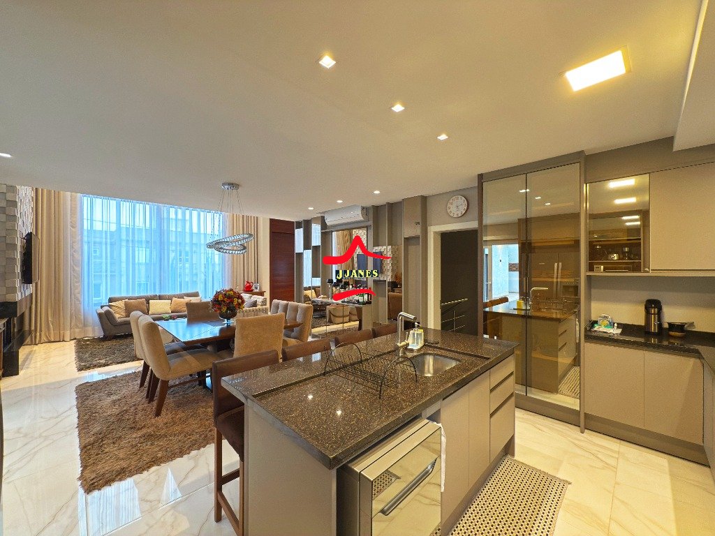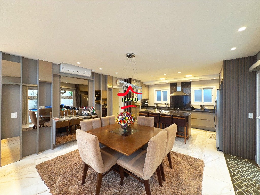 - Amplo Living (Hall, sala de estar com lareira e pé direito duplo, sala de jantar, cozinha com ilha), vista para piscina; 1 DORMITÓRIO banheiro social; lavanderia;