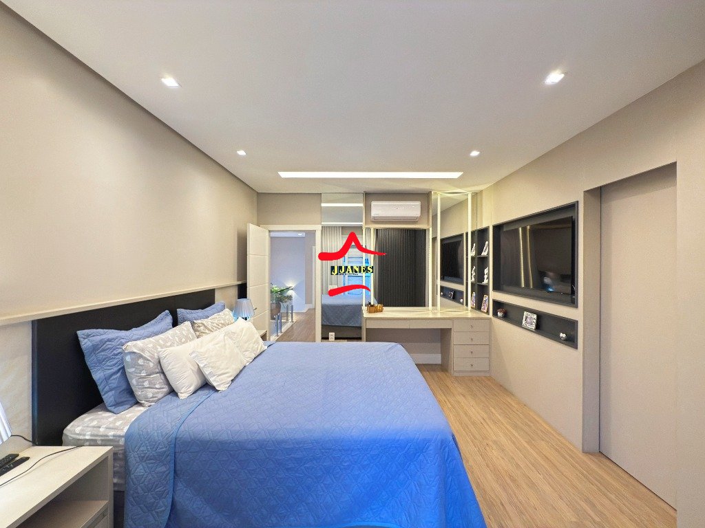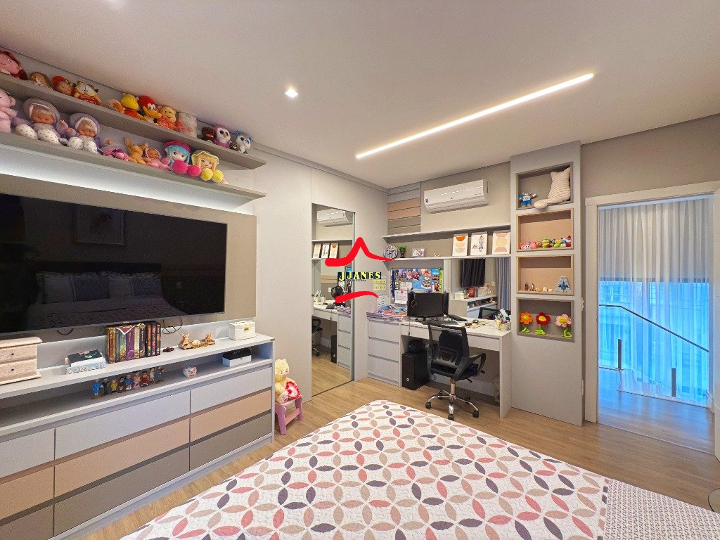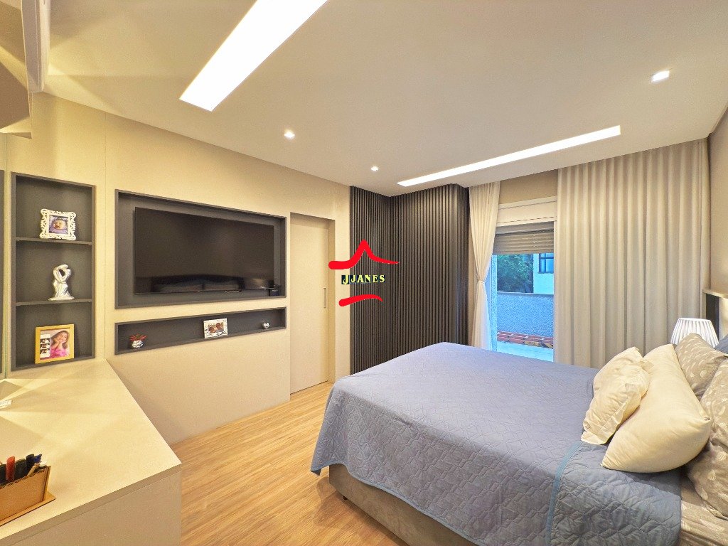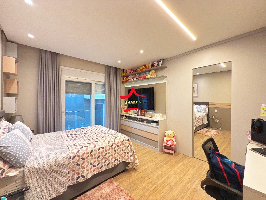 1º PAVIMENTO: 2 Amplas suítes com closet e sacada, sendo que uma com banheira de hidro; (sala de cinema com sacada, com possibilidade de utilizar como outro dormitório); banheiro social;