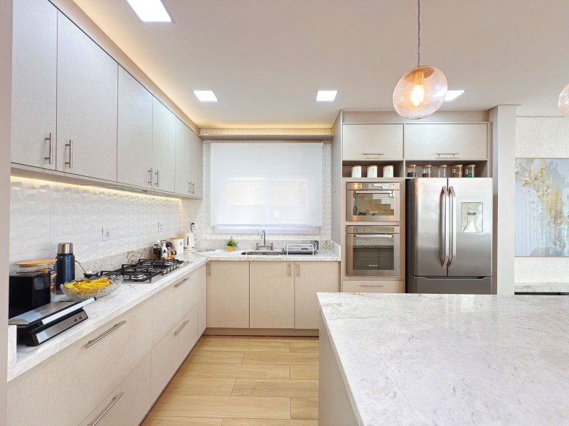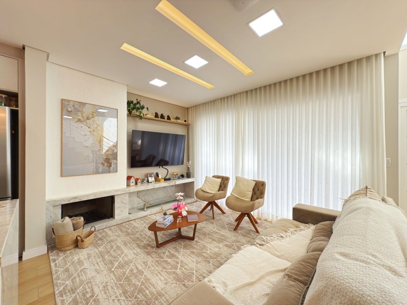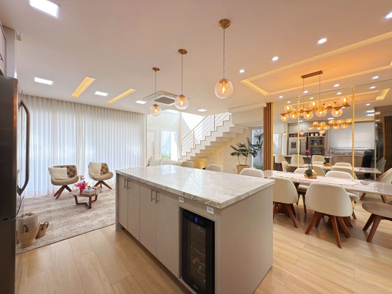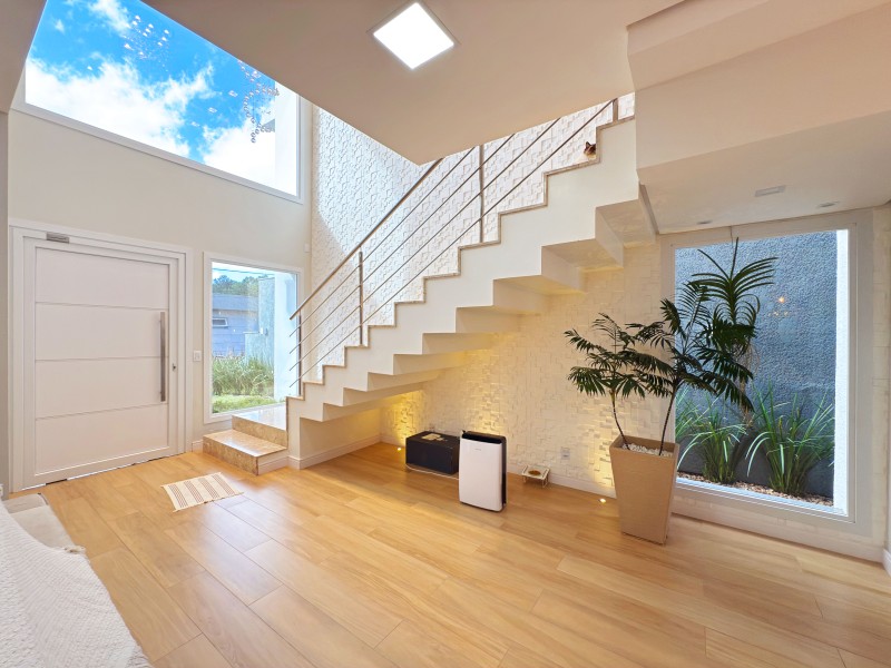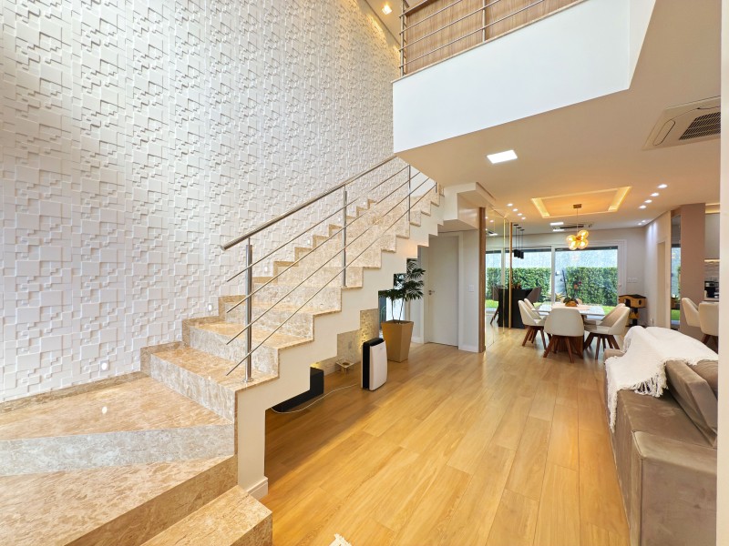 Térreo: Amplo living(sala de estar com lareira ecologica, e à lenha; sala de jantar; cozinha com ilha; espaço gourmet) Lavabo, lavanderia.
