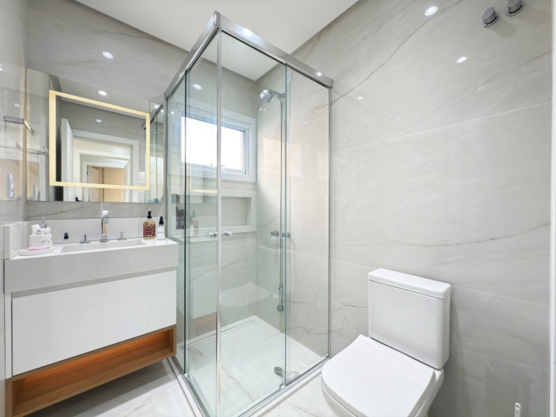 1 pavimento; Home office, 3 dormitórios, sendo uma ampla suíte com closet e sacada, no banheiro 2 duchas e 2 cubas.
