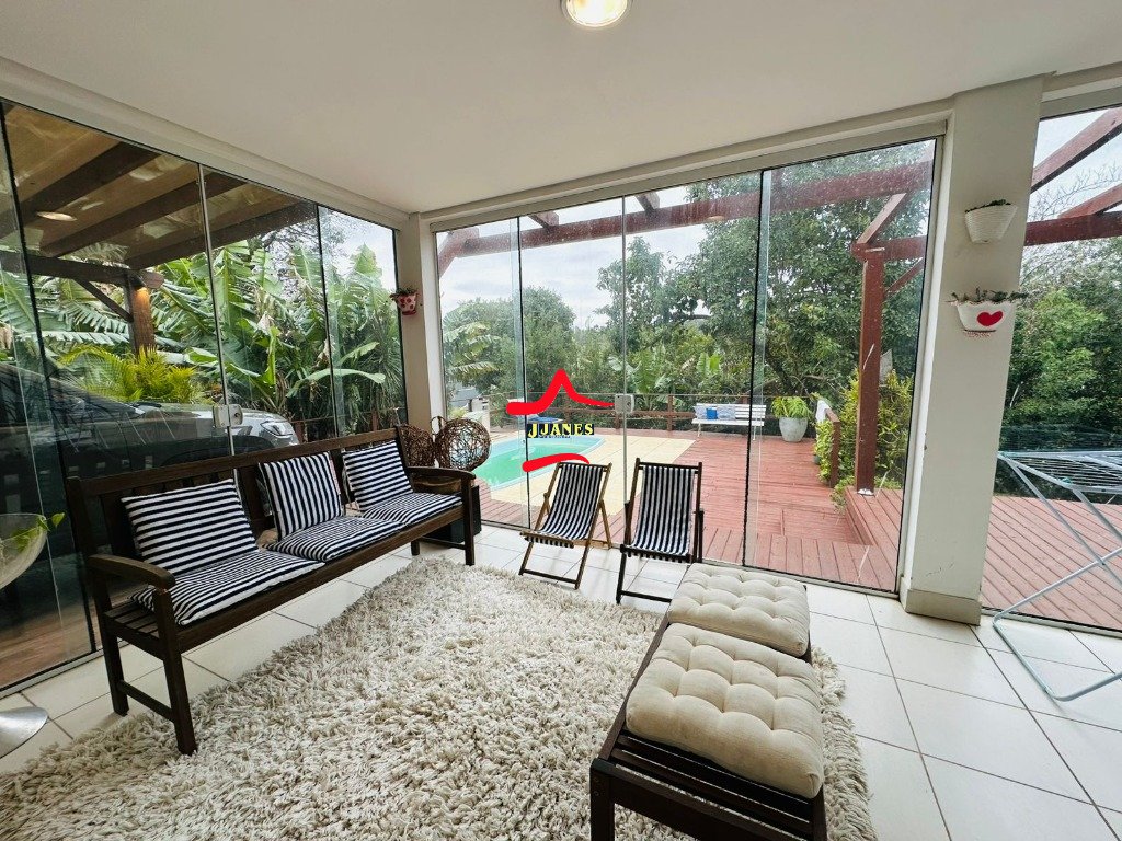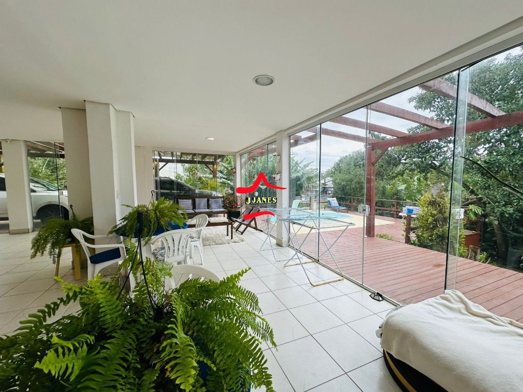 Vagas p/ carro sendo 4 cobertas, piscina c/ deck, frutíferas.