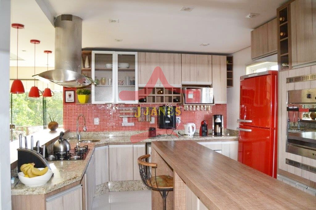 Excelente residência de 3 pavimentos semi mobiliada, composta de 03 dormitórios (sendo 01 suíte com hidro), banheiro social, lavabo, sala de estar e jantar com lareira; cozinha e cozinha integrada. Espaço Gourmet com churrasqueira, fogão cooktop, forno e fogão à lenha, lavado, depósito e lavanderia. Nos fundos recanto ao ar livre. Terreno todo cercado com árvores frutíferas e horta. Condomínio com infra estrutura completa. Proprietária aceita imóvel como parte do pagamento de até R$ 300.000,00.
