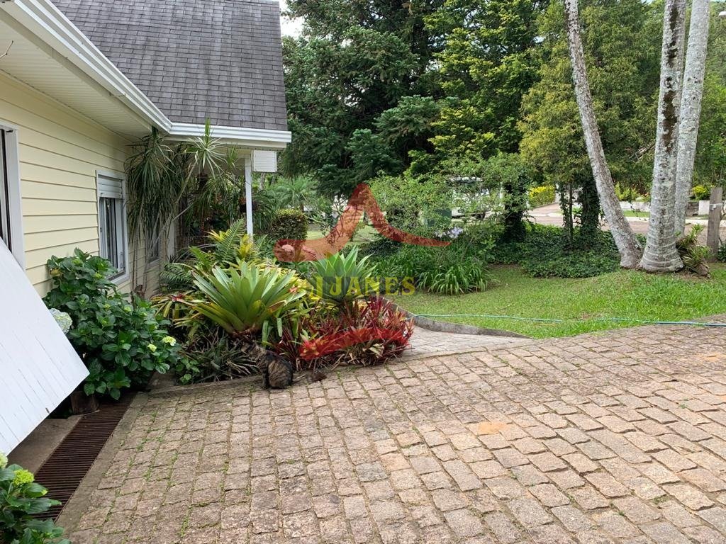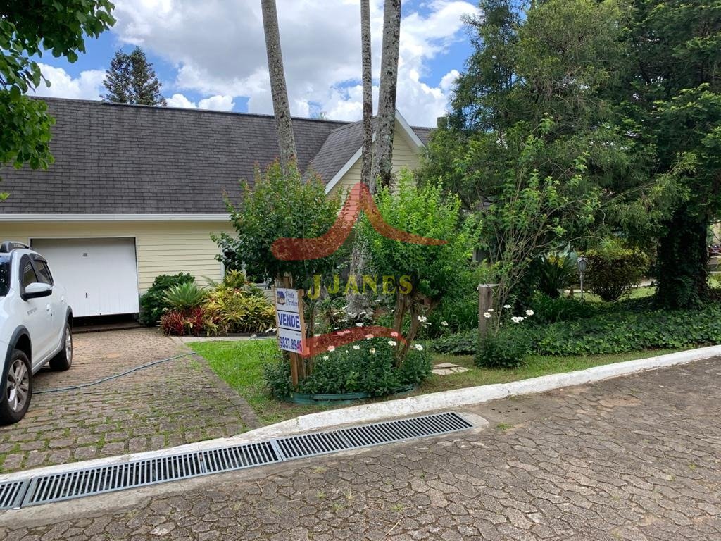 Residência em condomínio alto padrão, térrea, 3 dormitórios, banheiro social e banheiro de serviço, sala de estar, jantar e cozinha integradas, lareira, área de serviço, garagem, piscina com quiosque churrasqueira, sótão, banheiro social, depósito paisagismo.