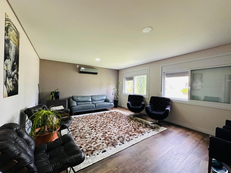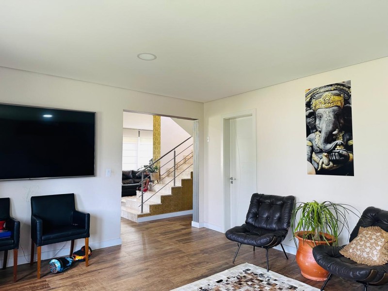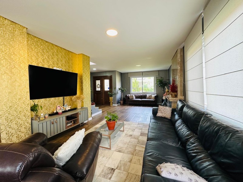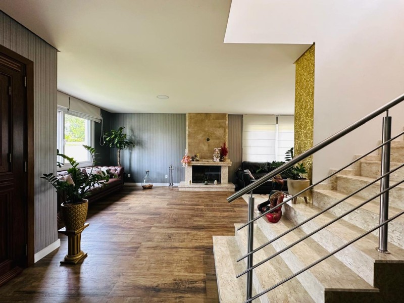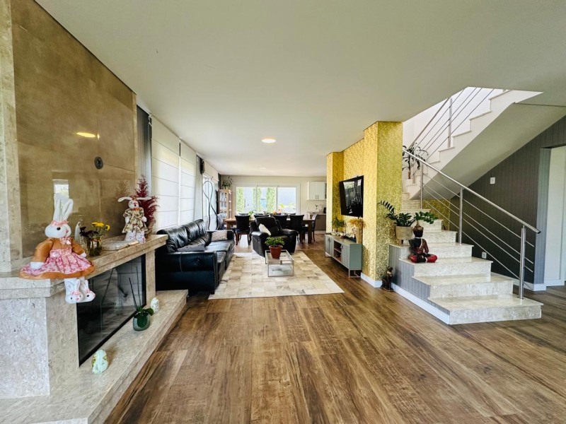 TÉRREO - 01 suíte ou estar; amplo living (estar com lareira, sala de tv, sala de jantar e cozinha com ilha) adega; lavanderia; espaço gourmet, piscina e depósito.