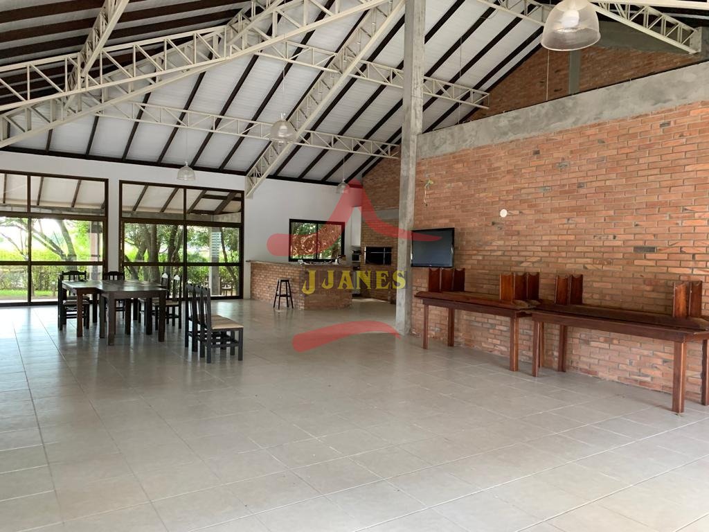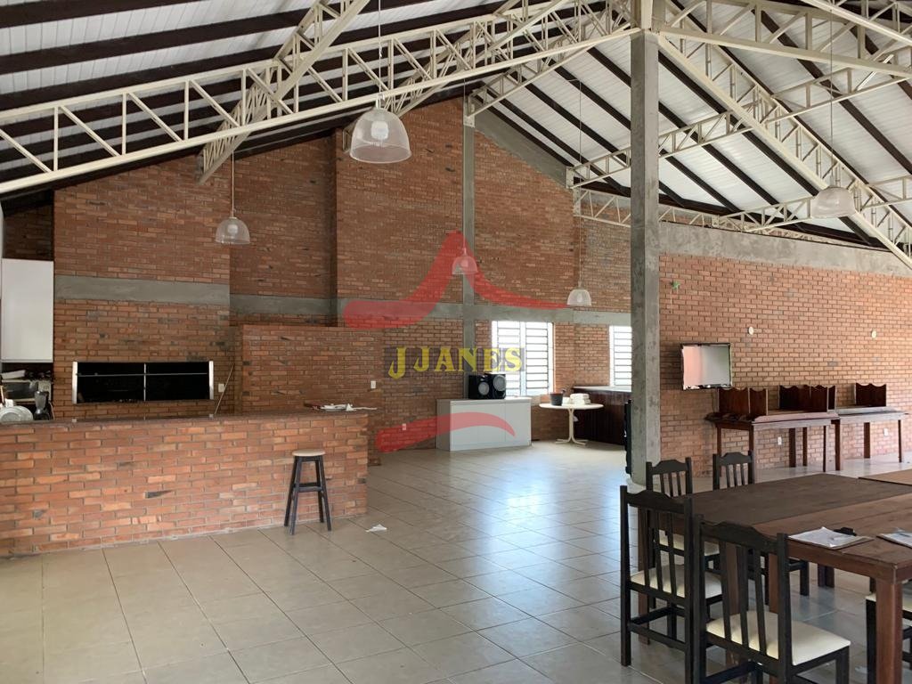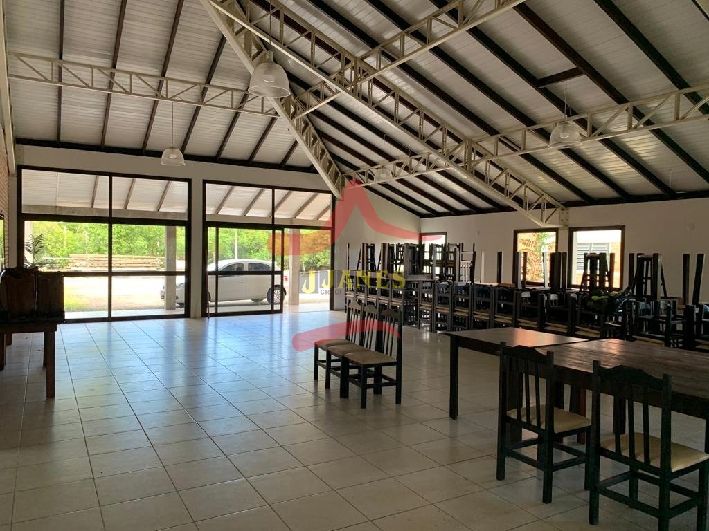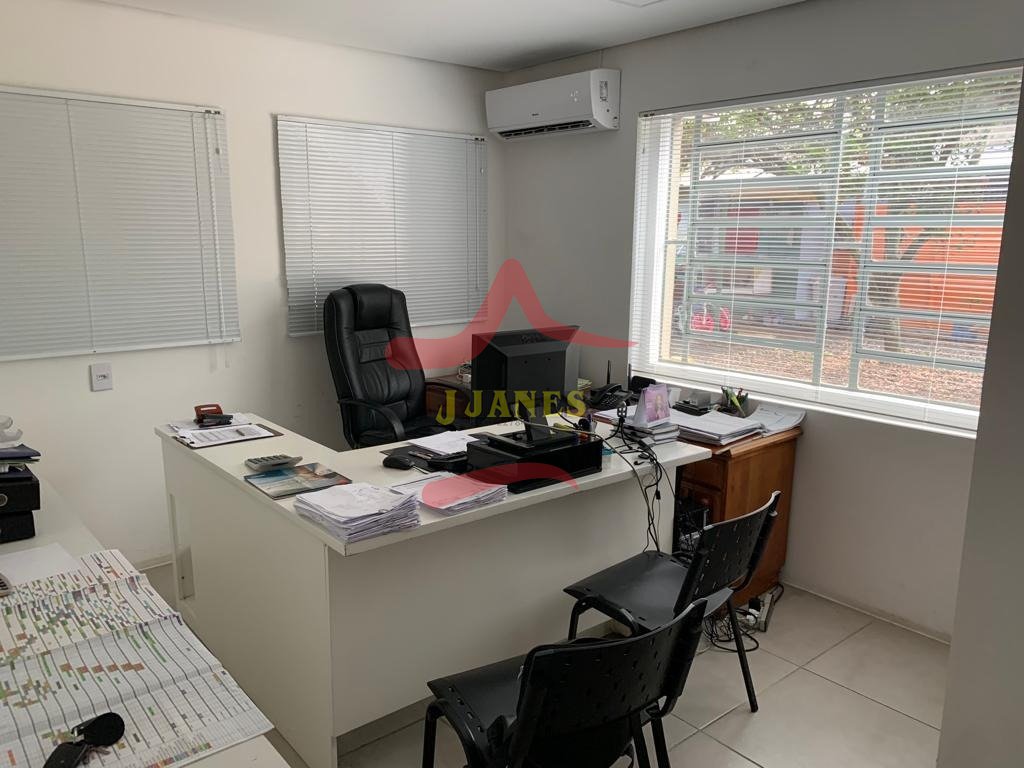 Prédio (depósito), excelente padrão construtivo, 850m2; área de terra de 8.604m2; mezanino, 2 escritórios, 2 banheiros, (sendo 1 duplo), piso apropriado para suportar carretas, pé direito 8m; mais área social de 380m2, toda equipada, cozinha completa, salão de festas, churrasqueira, cancha de bocha, banheiros; energia trifásica; parte externa campo de futebol, casa caseiro.