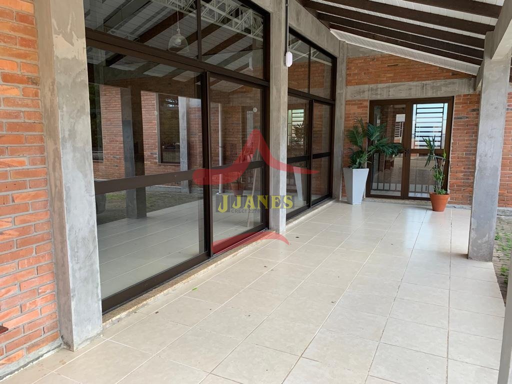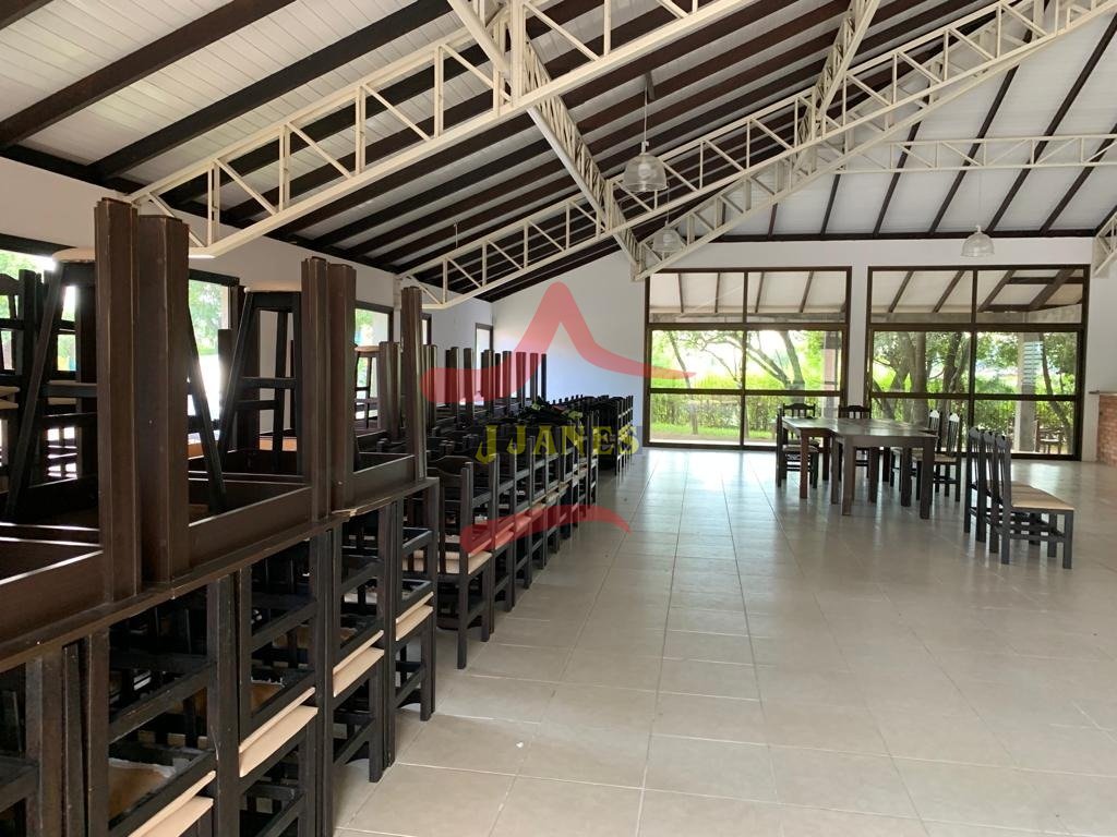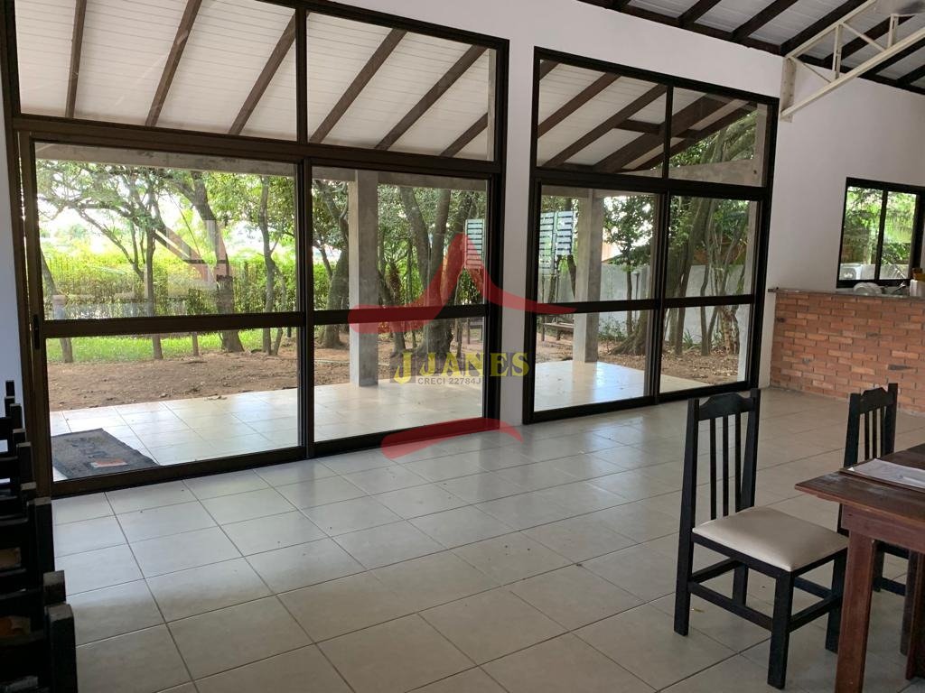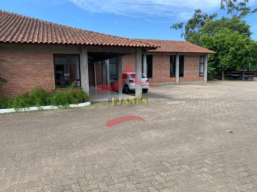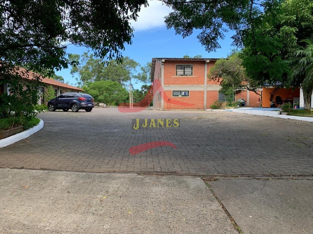 Prédio (depósito), excelente padrão construtivo, 850m2; área de terra de 8.604m2; mezanino, 2 escritórios, 2 banheiros, (sendo 1 duplo), piso apropriado para suportar carretas, pé direito 8m; mais área social de 380m2, toda equipada, cozinha completa, salão de festas, churrasqueira, cancha de bocha, banheiros; energia trifásica; parte externa campo de futebol, casa caseiro.