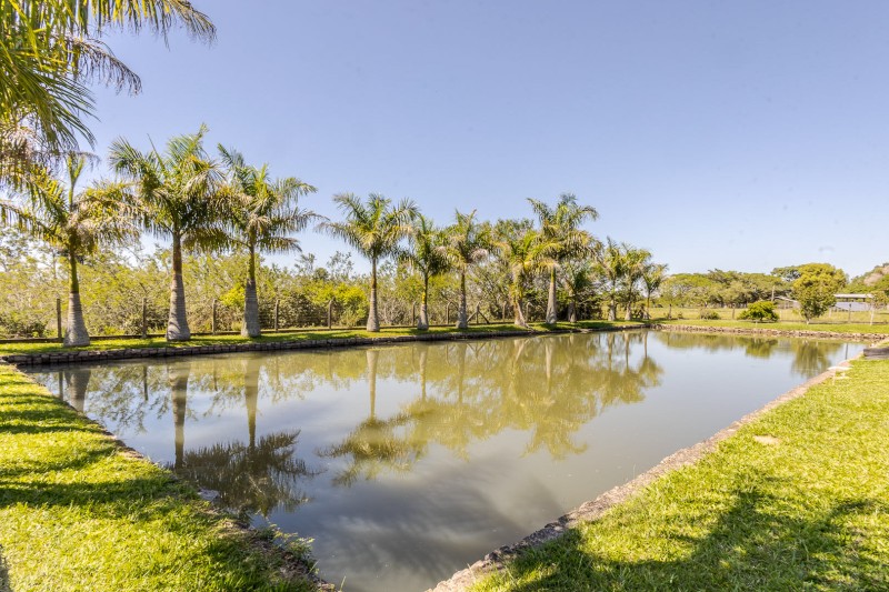 JJANES VENDE - Excelente sítio com 4.000m² de área total, sendo 50 metros de frente para a Rodovia RS-040, com topografia plana e excelente aproveitamento do terreno, todo cercado, composto por uma residência em alvenaria com aproximadamente 180m², 3 dormitórios (sendo 1 suíte com banheira de hiodromassagem), banheiro social, sala de estar com lareira, sala de jantar, ampla cozinha, área de serviço, churrasqueira, além de açude, poço artesiano, horta, pergolado e sistema de água quente.
