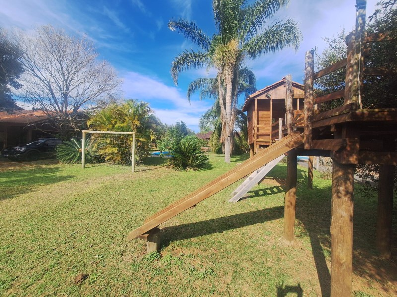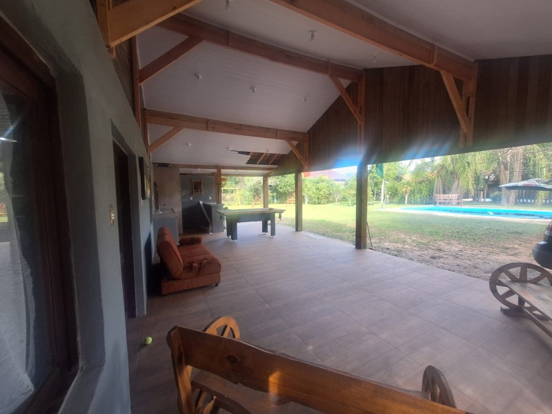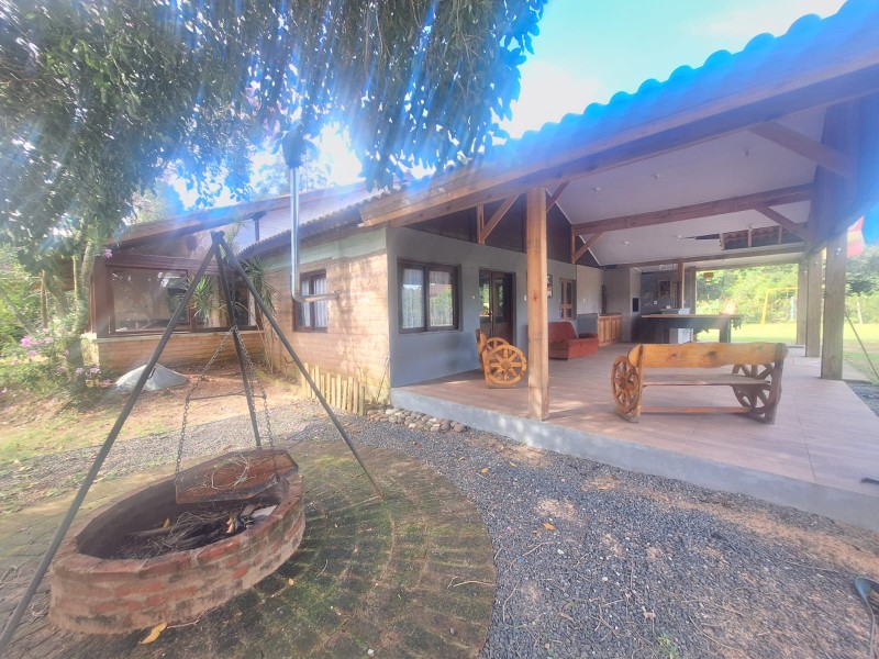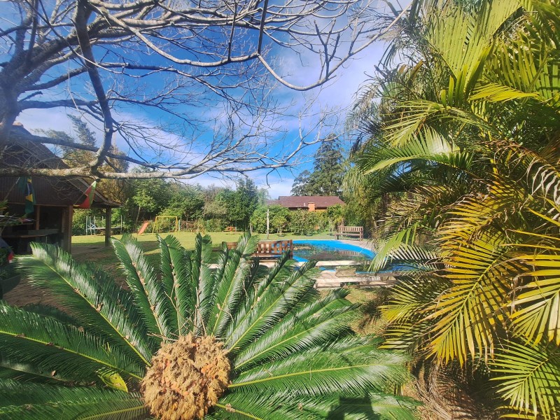 Sítio no Condomínio Fechado Rancho Alegre e Feliz, em Águas Claras Viamão/RS, com área de 4.640m². Possui casa mista em pedra e madeira de lei, totalmente mobiliada, com 4 dormitórios, 3 banheiros, sala de estar com lareira, sala de jantar e cozinha completa com churrasqueira. Conta ainda com lavanderia e espaço gourmet externo com churrasqueira e mesa de sinuca.