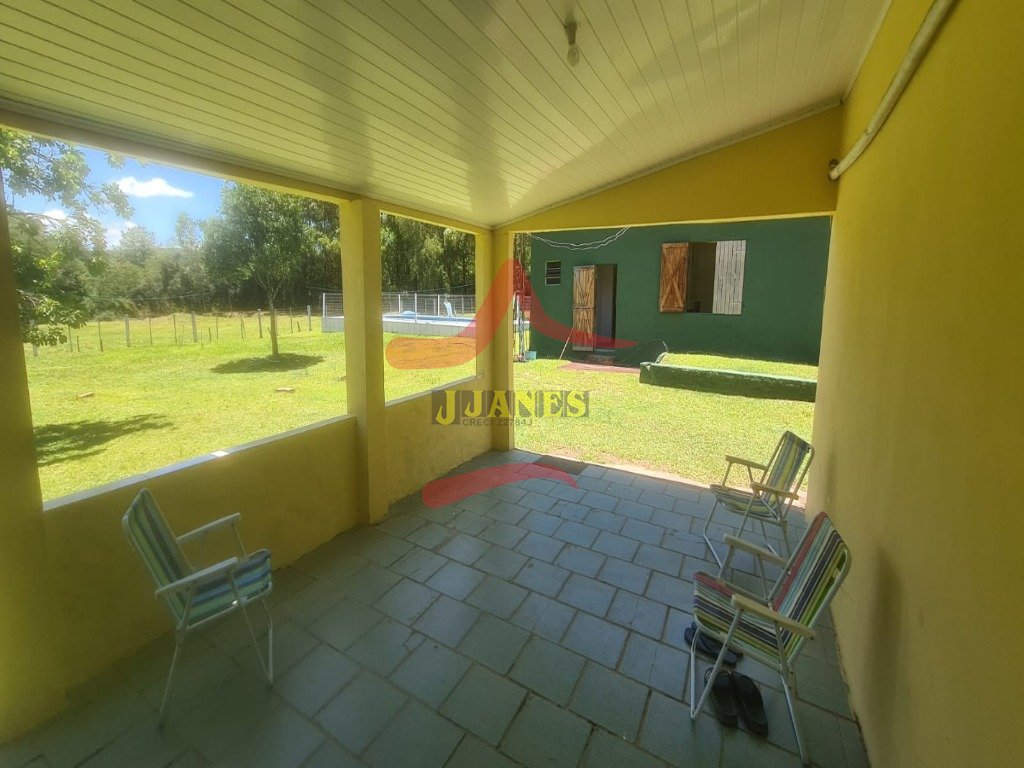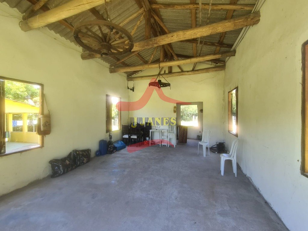 Casa principal de alvenaria, 142,77 com 4 dormitórios sendo um suíte, sala de estar, cozinha, banheiro social e varanda com churrasqueira. O imóvel possui ventilador de teto em todos os cômodos e ar condicionado 18000btus., piscina, 2 açudes, galpão campeiro, galpão com cocheiras.