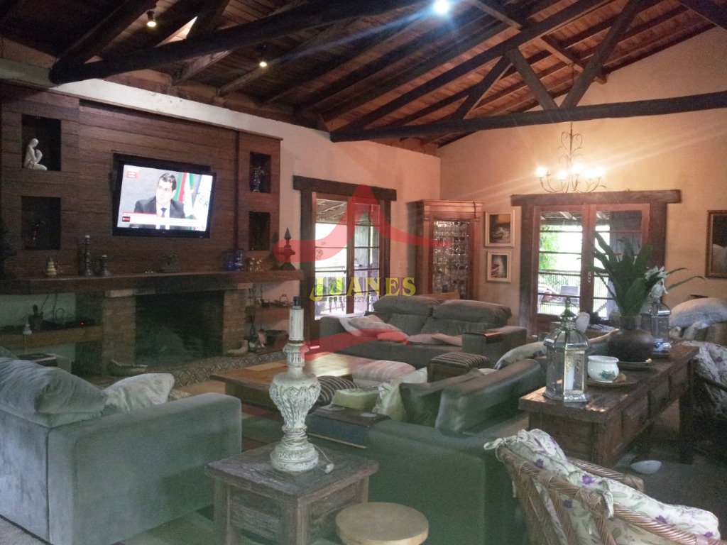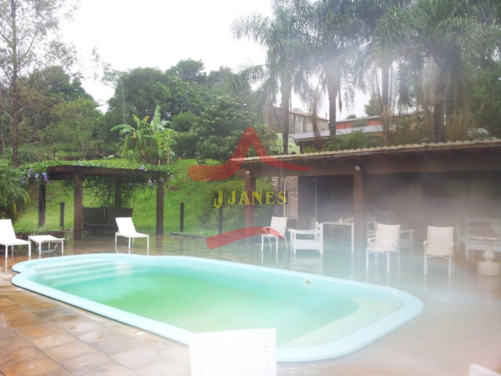 BECO DOS GUTERRES- Sítio com llinda residência toda em laje, medindo 400m², semi mobiliada, com 6 dormitórios (sendo 2 suítes, 1 com closet), 3 banheiros sociais, sala ampla para 3 ambientes (1 com lareira e sacada), sala de jantar, cozinha com forno e fogão campeiro, despensa, área de serviço e salão de festas com churrasqueira. Piscina com quiosque, playground, canil e açude com peixes. Excelente área toda cercada com paisagismo e árvores frutíferas, 900 metros do asfalto, 3km do centro de Viamão.