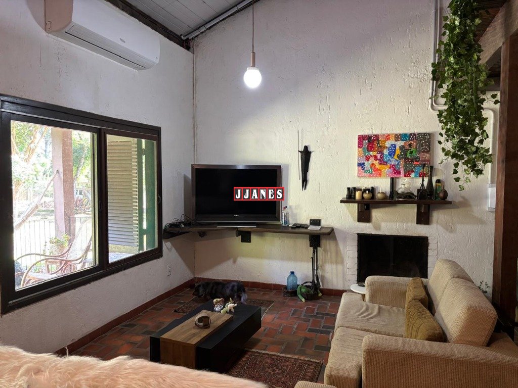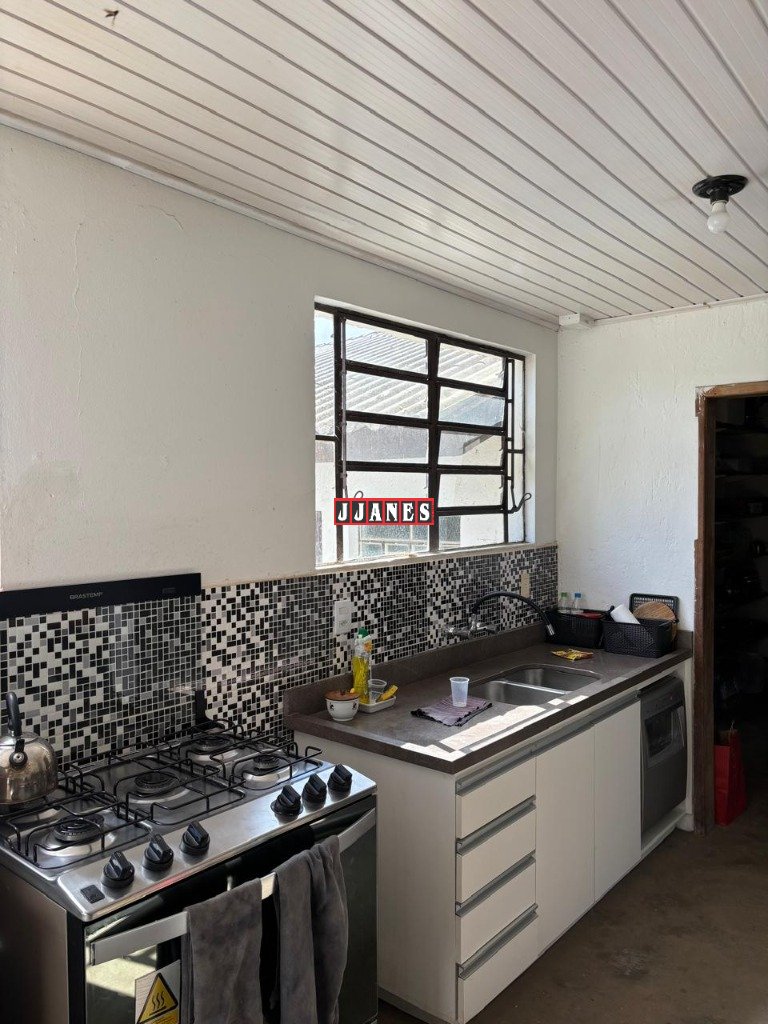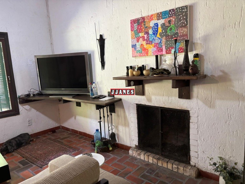 Casa para caseiro de 2 dormitórios, cozinha, banheiro e sala com lareira.