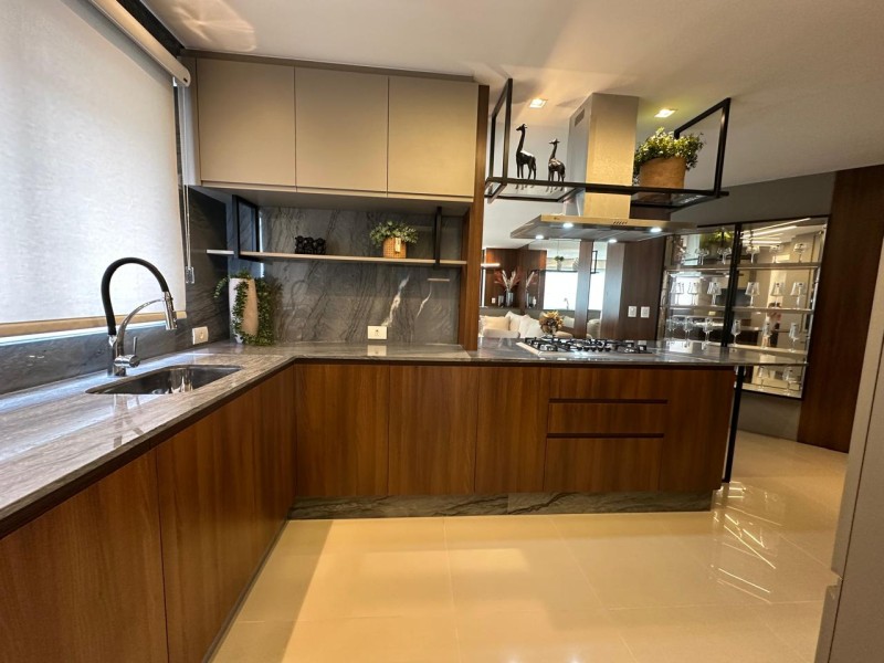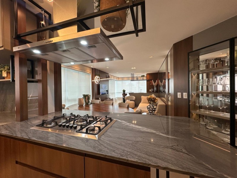 APARTAMENTO- Mobiliado e decorado, com 3 dormitórios, sendo 1 suíte ampla, banheiro social; lavabo, living 4 ambientes (cozinha americana, sala de estar com lareira, sala de jantar, sacada integrada com churrasqueira) e lavanderia.