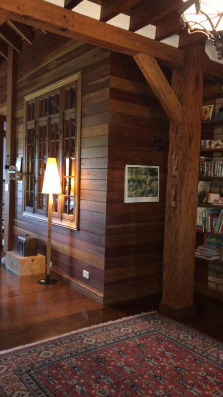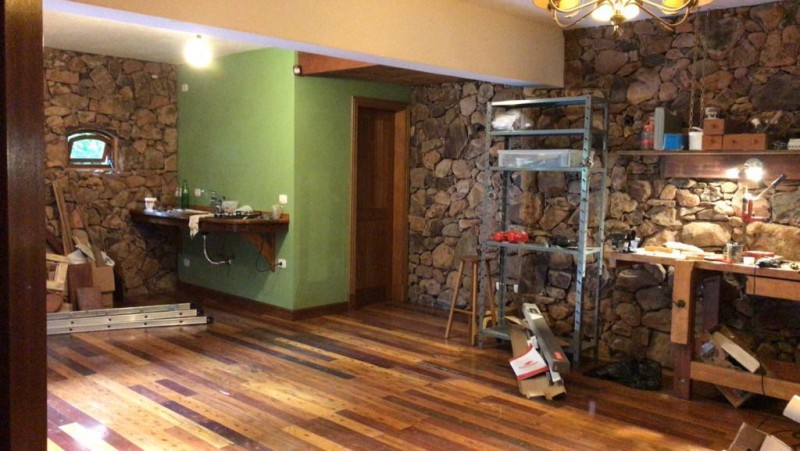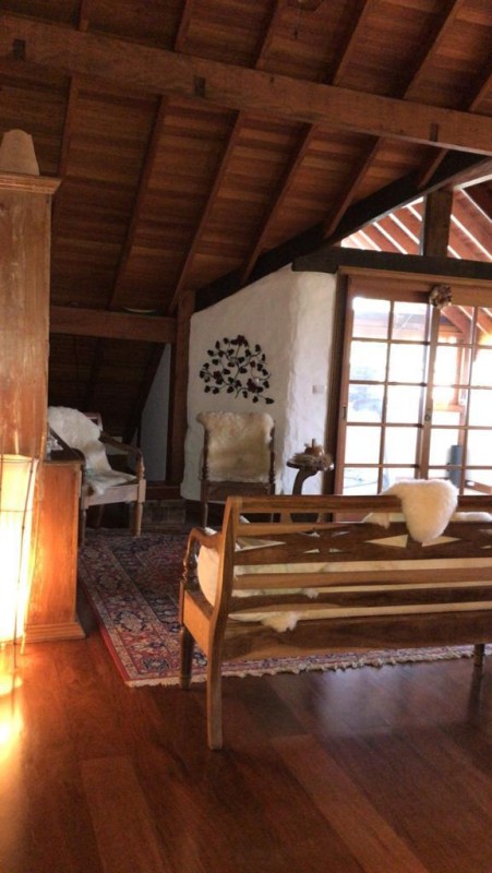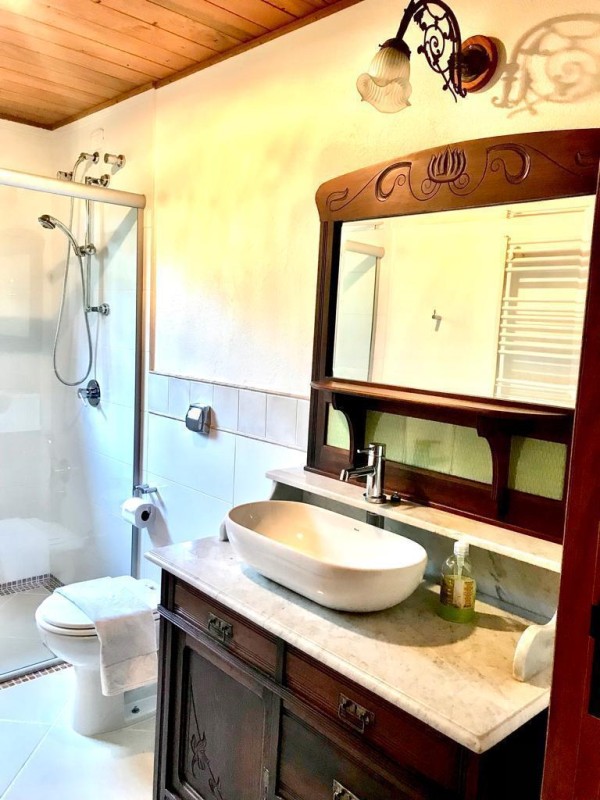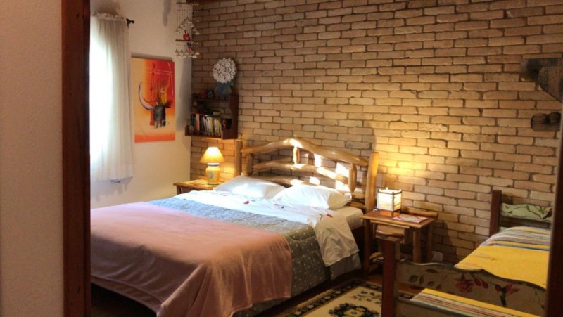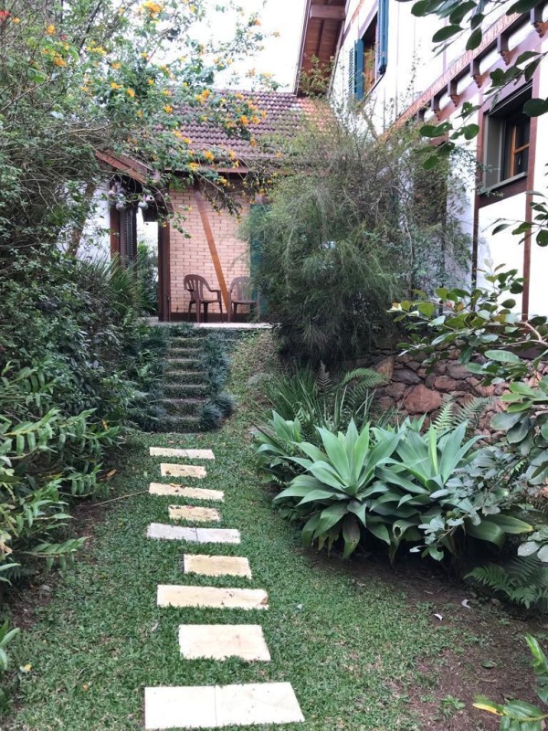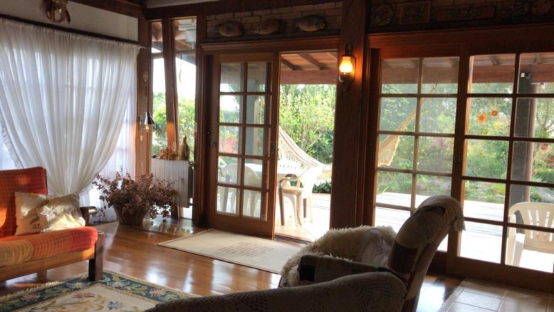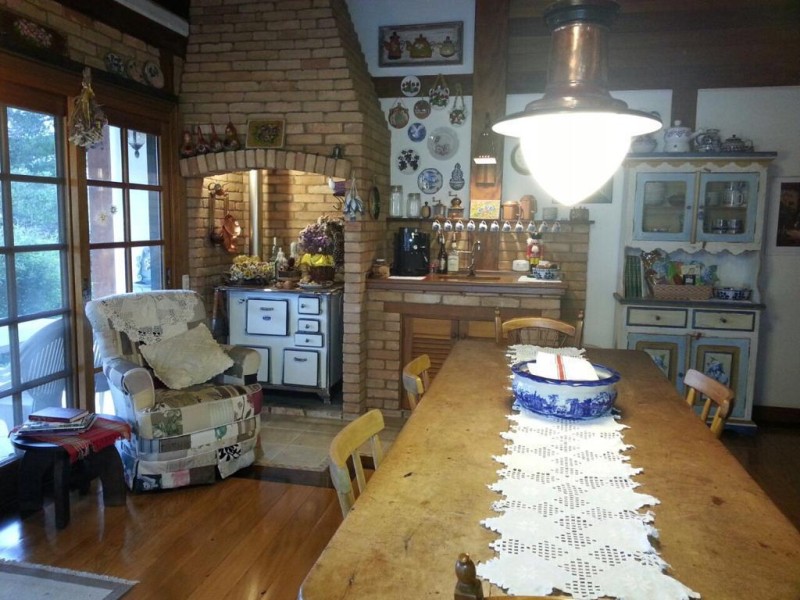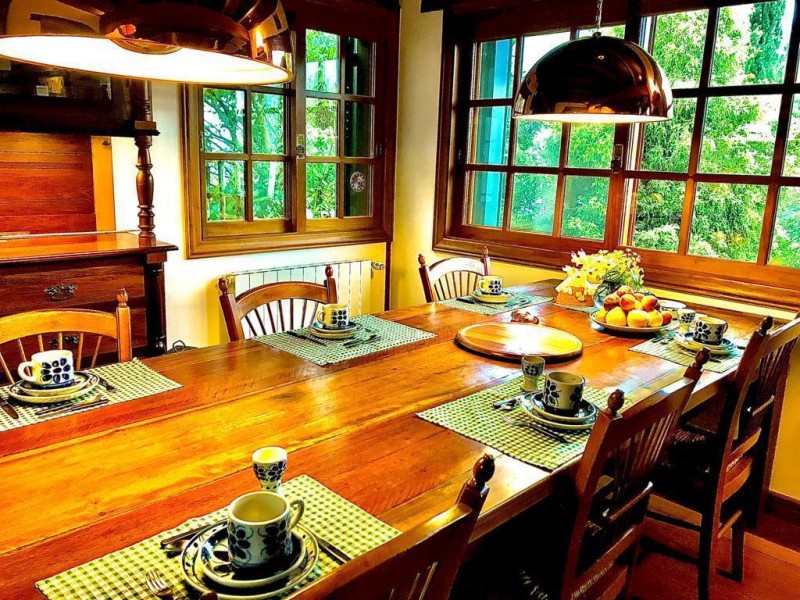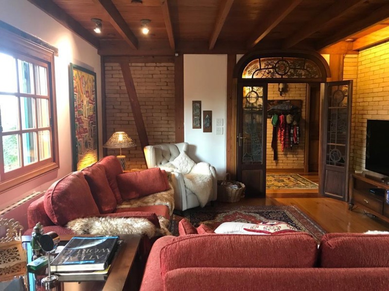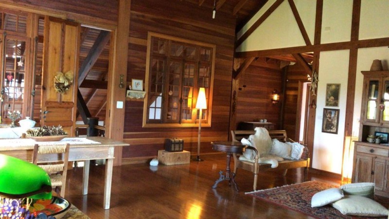 Casa com estrutura e assoalho em madeira de lei, além de lindos detalhes em madeira, vitrais e dizeres entalhados à mão, que conferem charme e autenticidade ao imóvel.