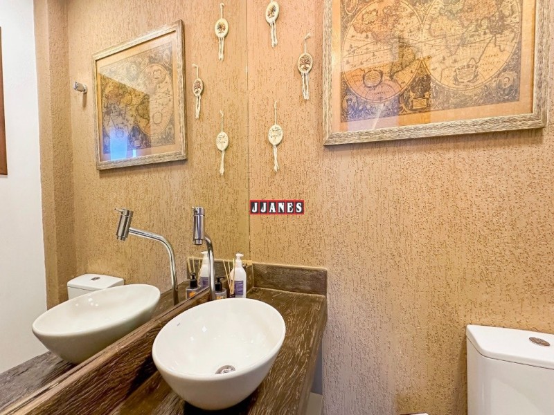 1º. pav. Hall, estar, jantar e cozinha integrada, com áreas confortáveis, lavabo, espaço gourmet, varanda ampla.