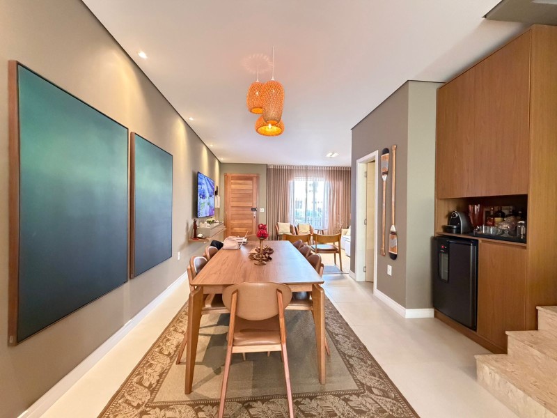 TÉRREO: Amplo living, sala de estar, sala de jantar, cozinha com ilha e churrasqueira, lavabo, lavanderia e varanda.